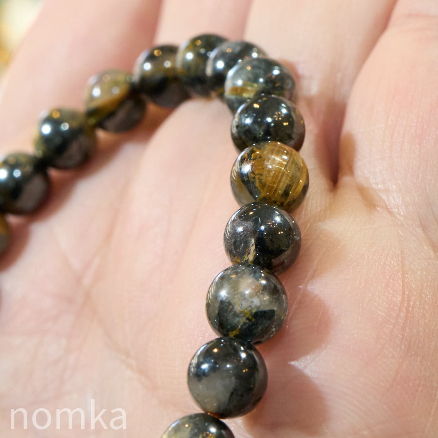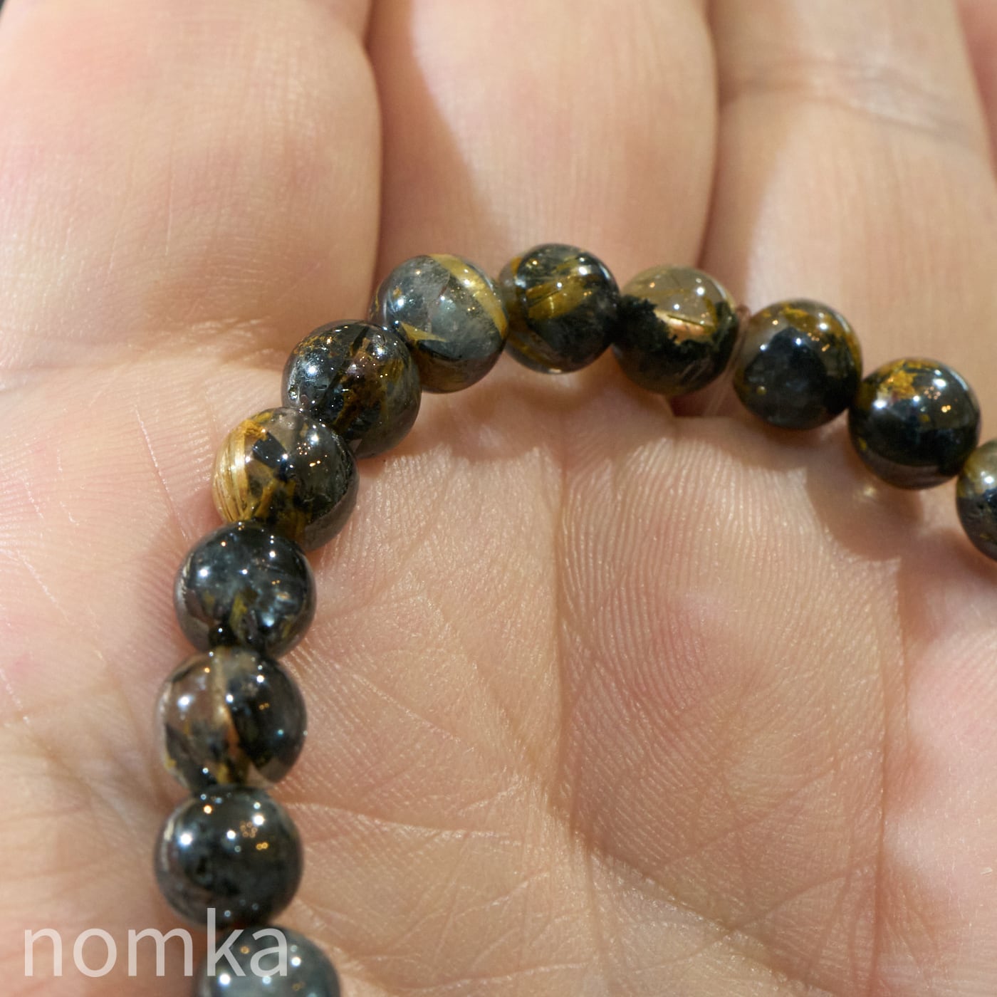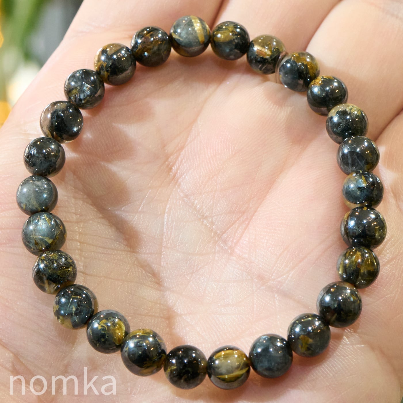 再掲載【運命を切り拓く太陽の力 -A】ヘマタイトインルチルクォーツ 一連ブレスレット(7mm/約16cm)
