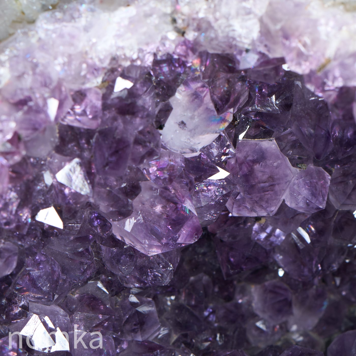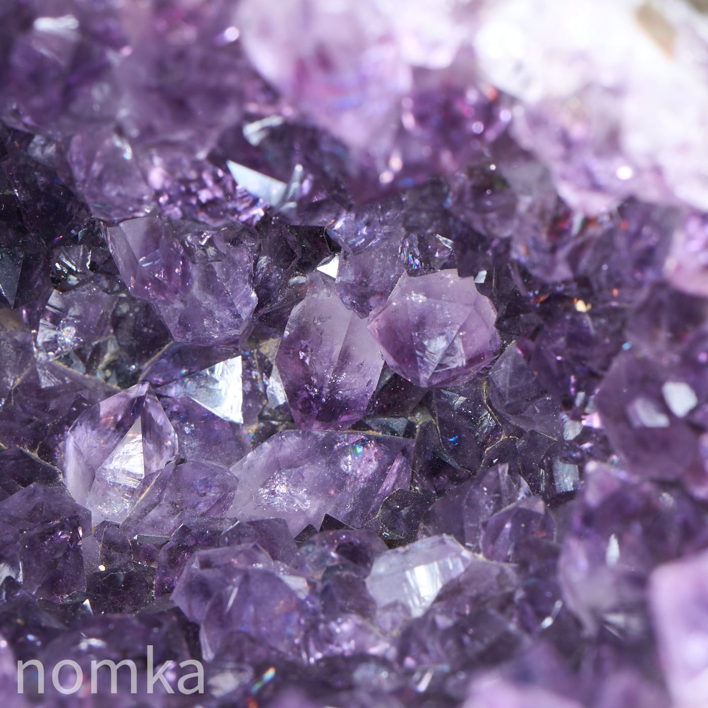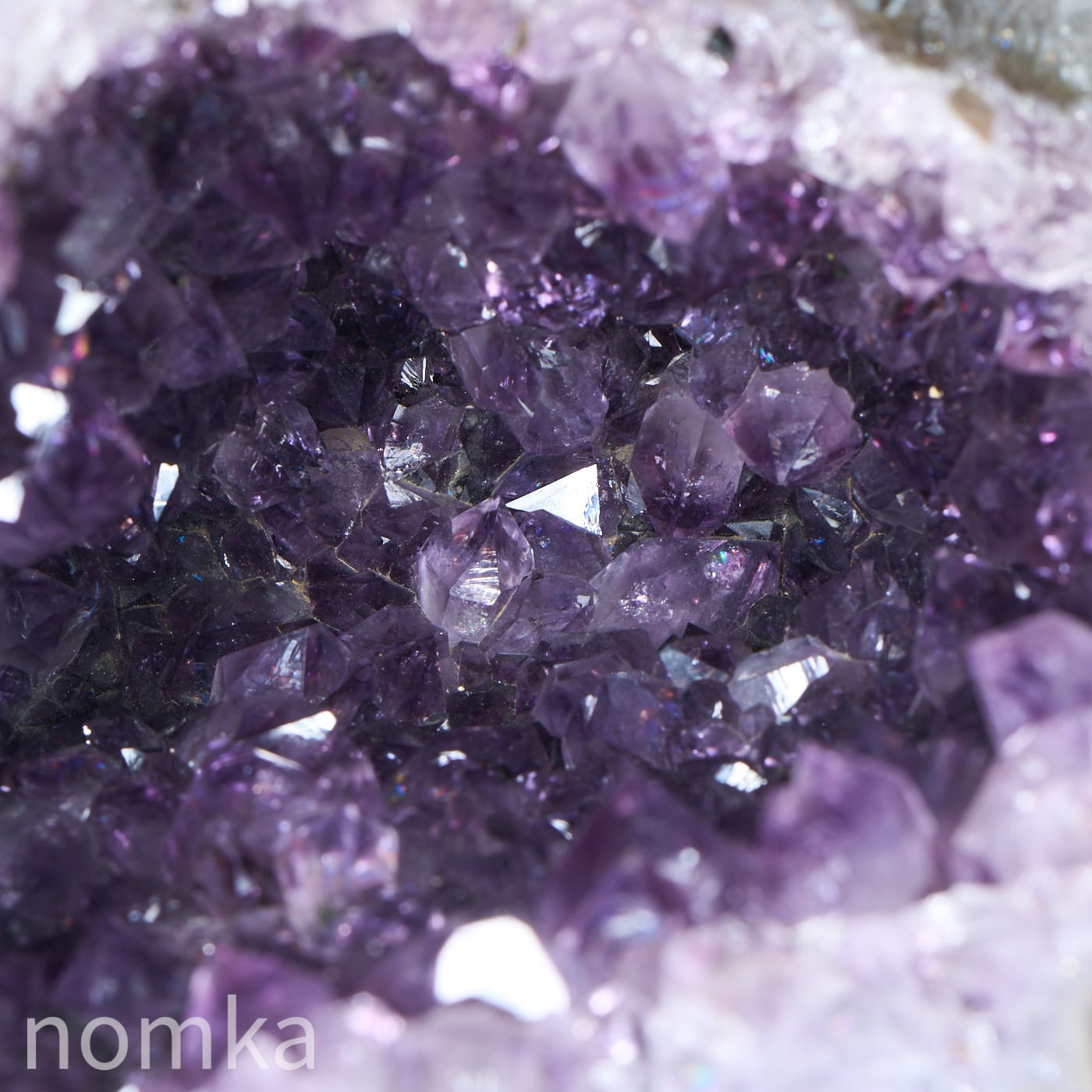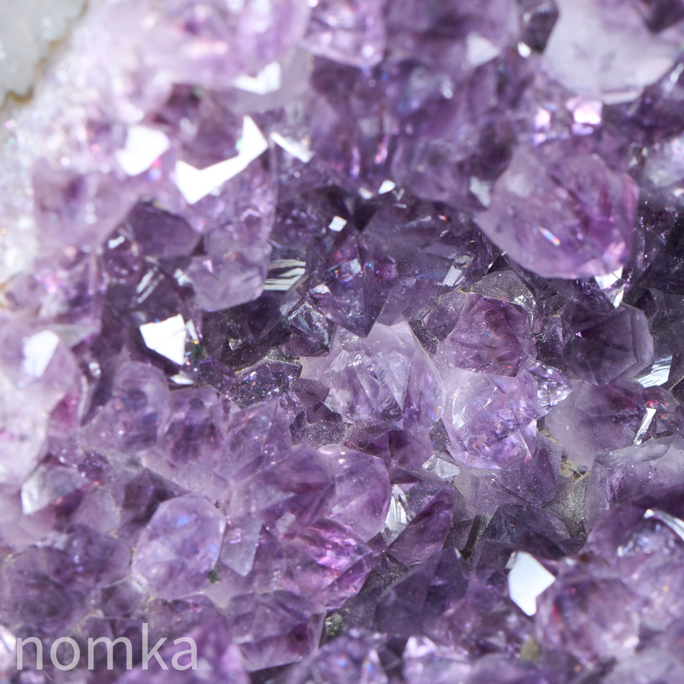 アメジストドームは、数千万年以上も昔、火山の噴火によって生まれた溶岩の中の「ガスが抜けた穴(空洞)」から始まります。その空洞の中に、鉄分を含んだケイ酸たっぷりの熱水が入り込み、長い時間をかけてゆっくりと結晶化したのが、この美しい紫の粒たちです。