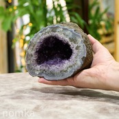 特にウルグアイ産は、ブラジル産に比べて結晶が小さく、色が非常に濃いのが特徴です。このカペーラのように、内側へ向かって深く入り込んだ形状は、まさに大地が大切に育て上げた「光のゆりかご」。