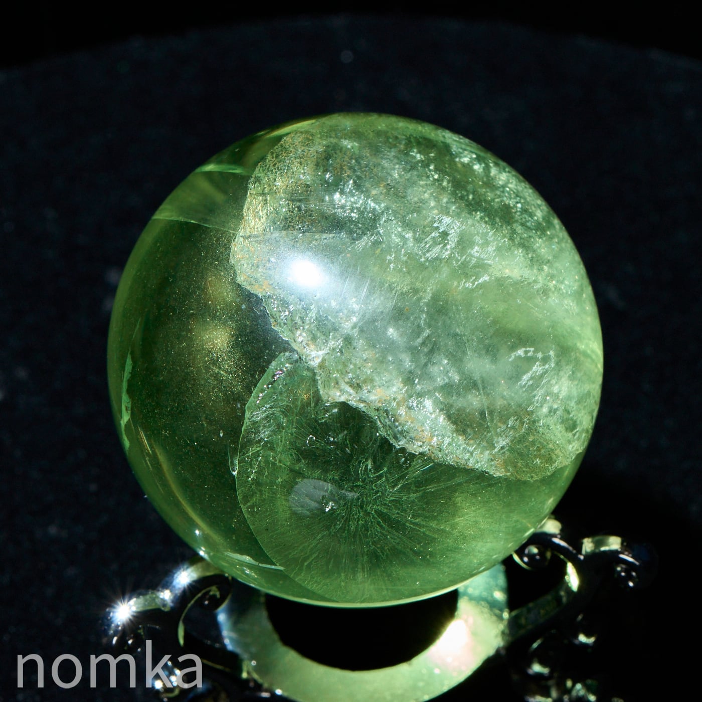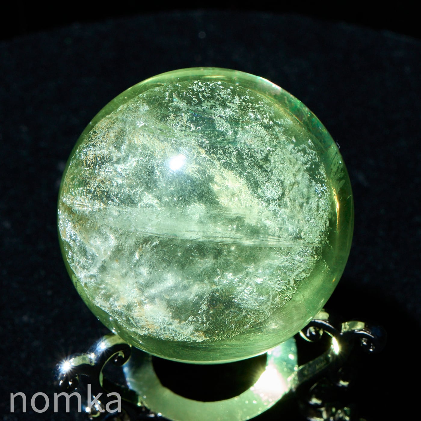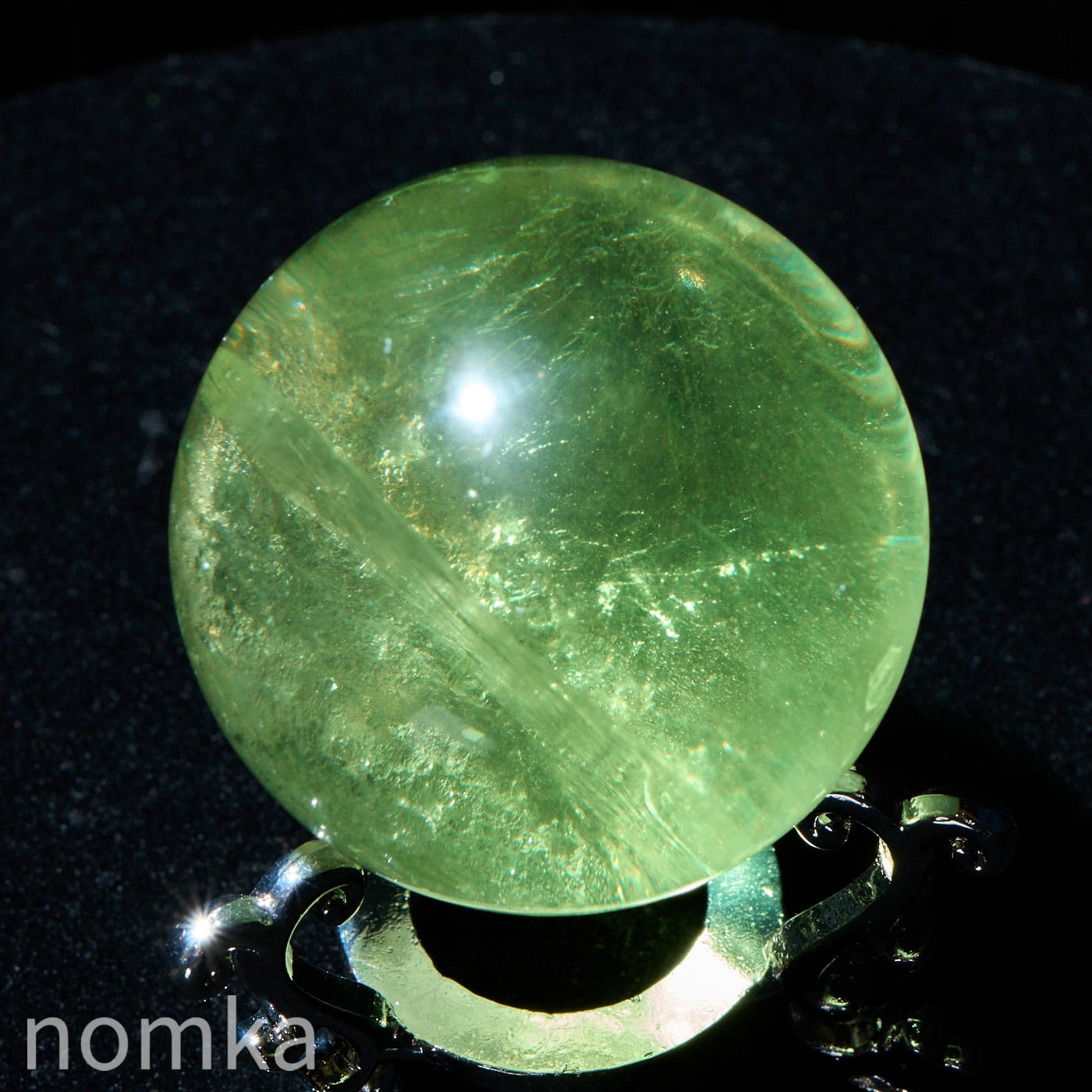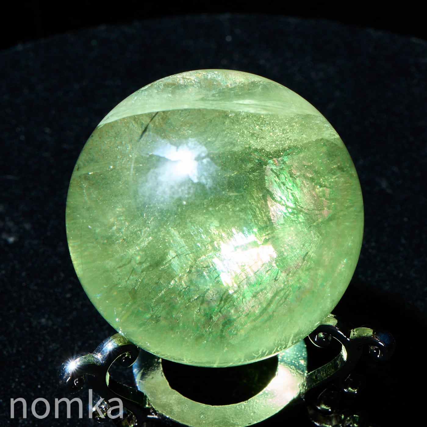 【光溢れる若葉のしずく】高品質グリーンフローライト(AAA) 45.5mmスフィア nsp-0018