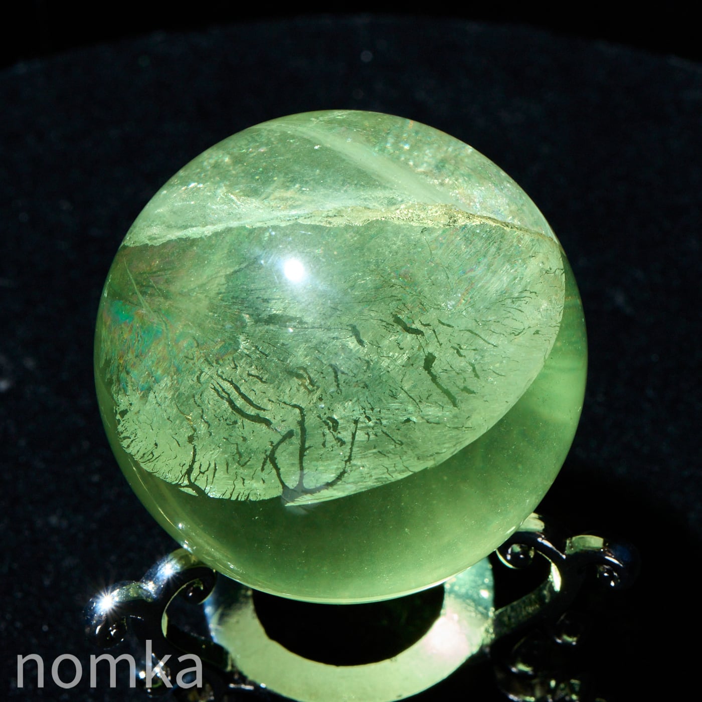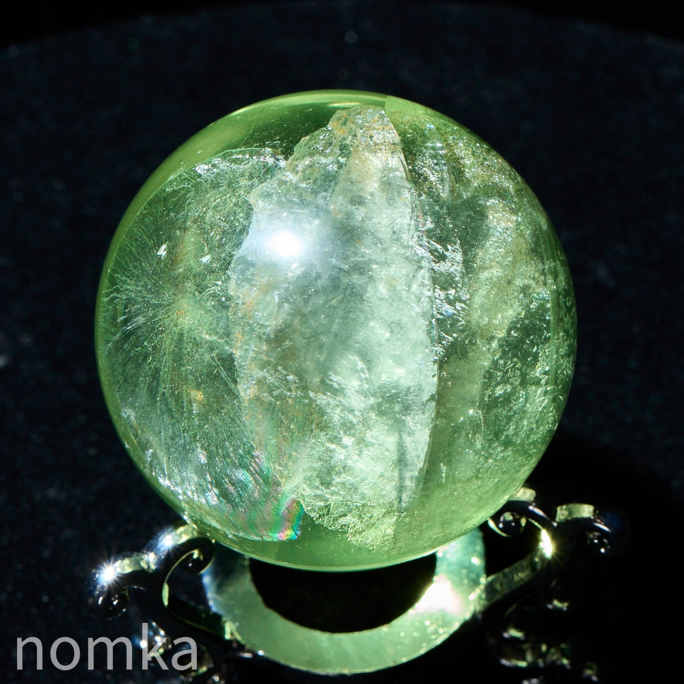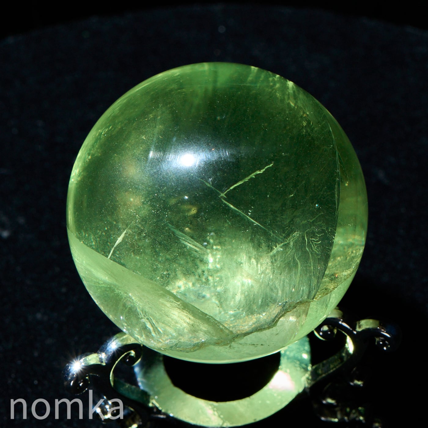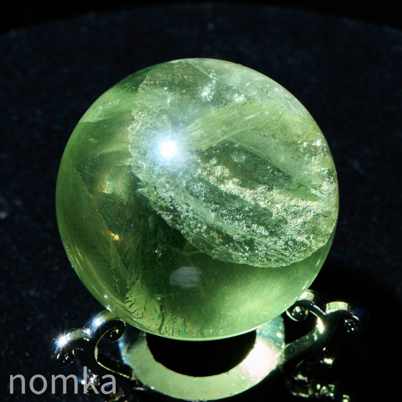 【光溢れる若葉のしずく】高品質グリーンフローライト(AAA) 45.5mmスフィア nsp-0018
