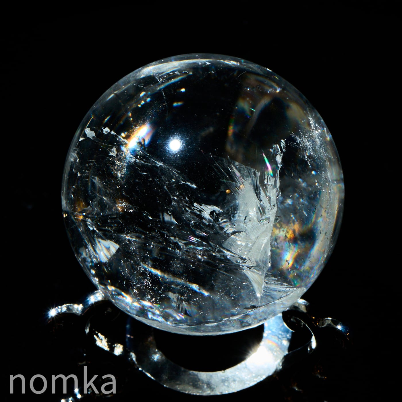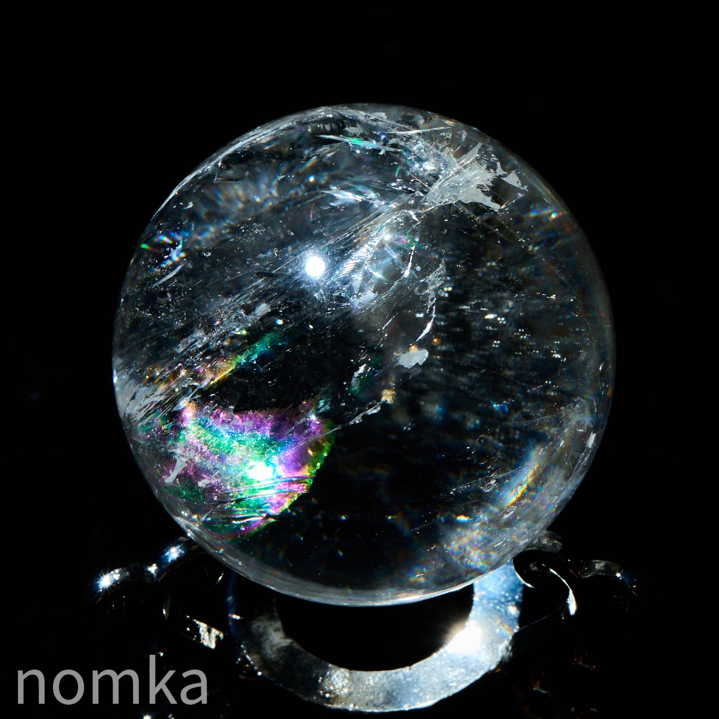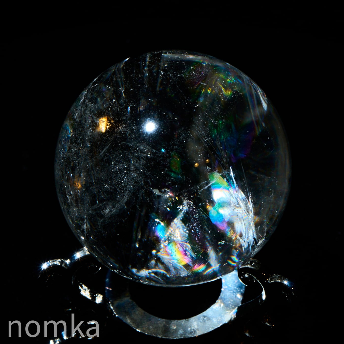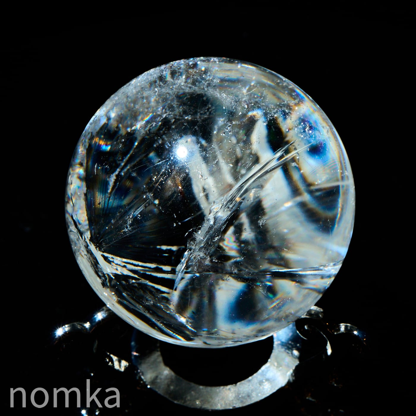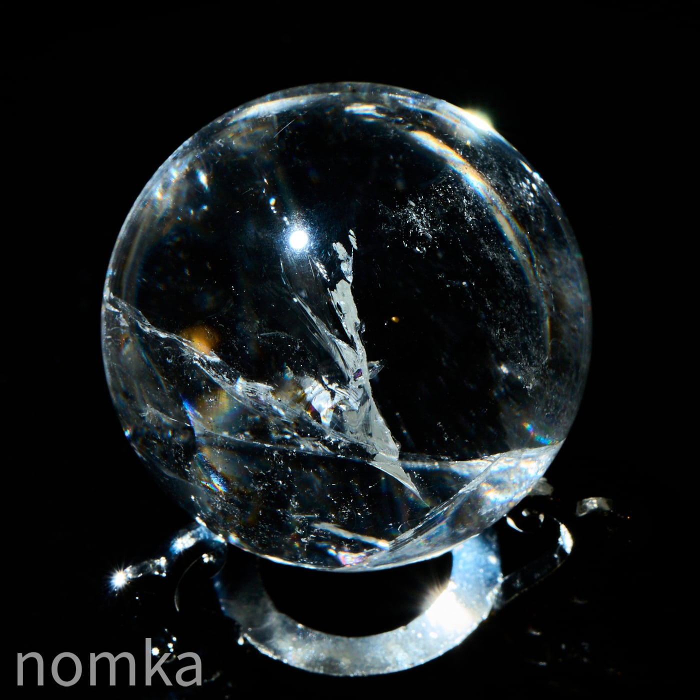 付属のランプに乗せると、透明度の高い水晶内部に刻まれたクラックやインクルージョンが光を複雑に乱反射させ、まるで銀河の渦を眺めているような、言葉にできないほど神秘的な光景が広がります。