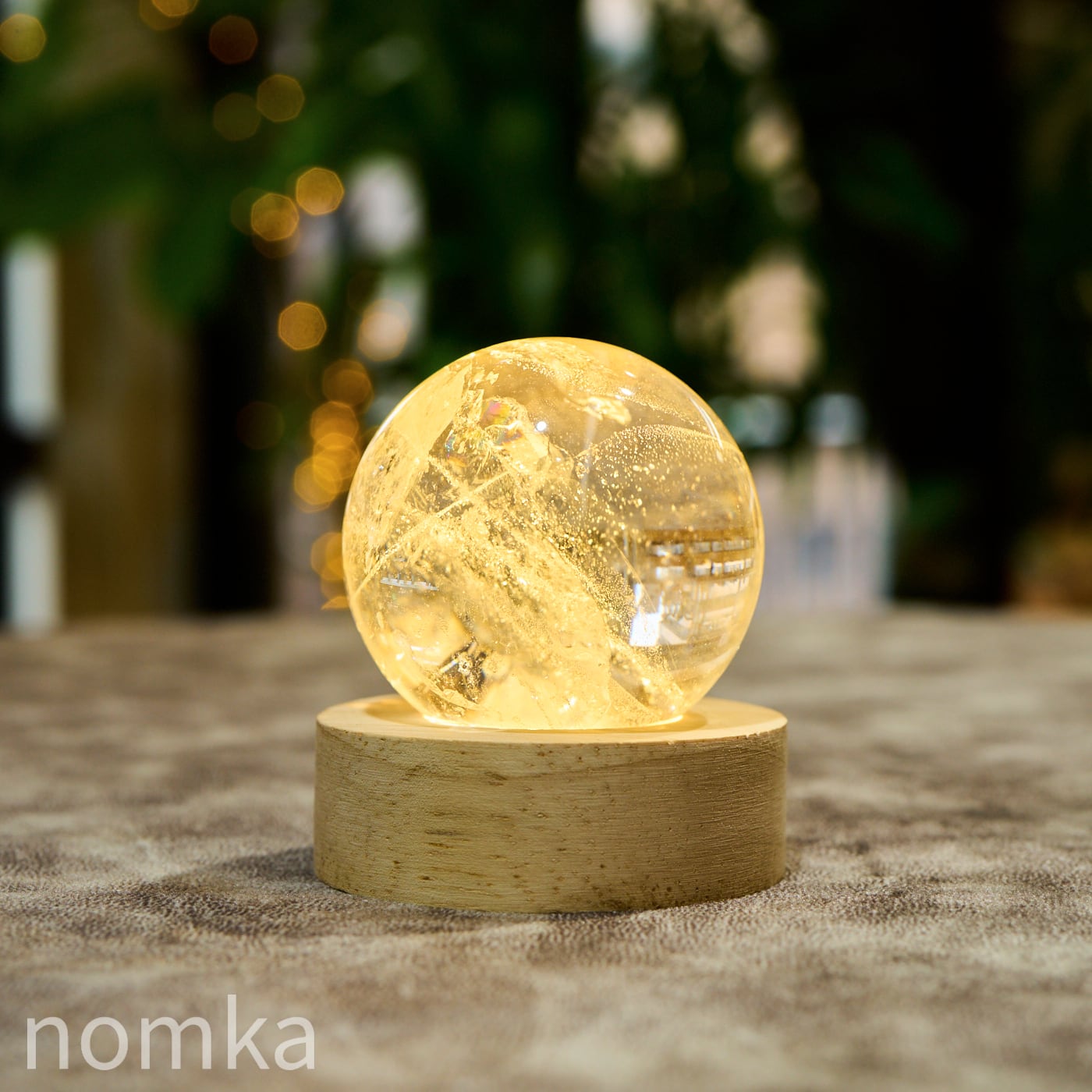 【古代の叡智を灯す、光の守護石】レムリアンシードクリスタル 46mmスフィア(LEDライト台座セット) nsp-0002