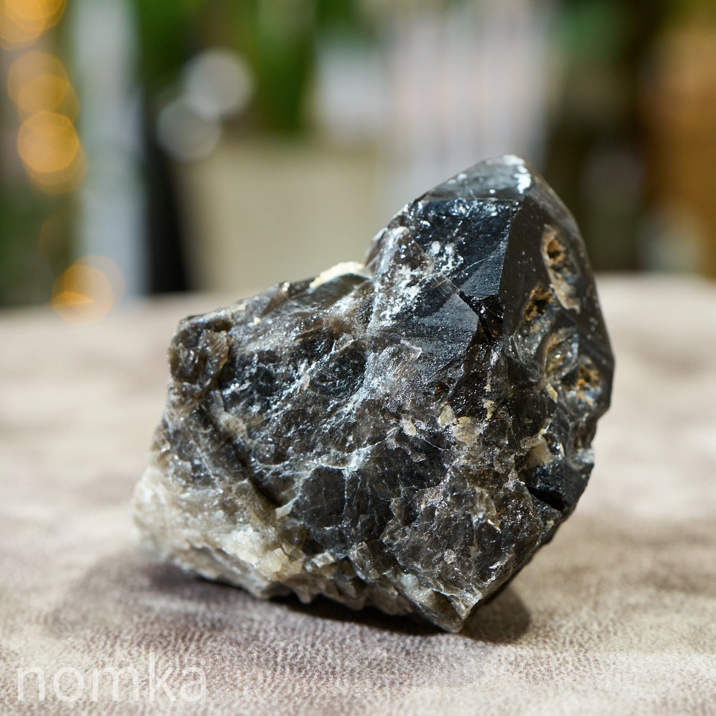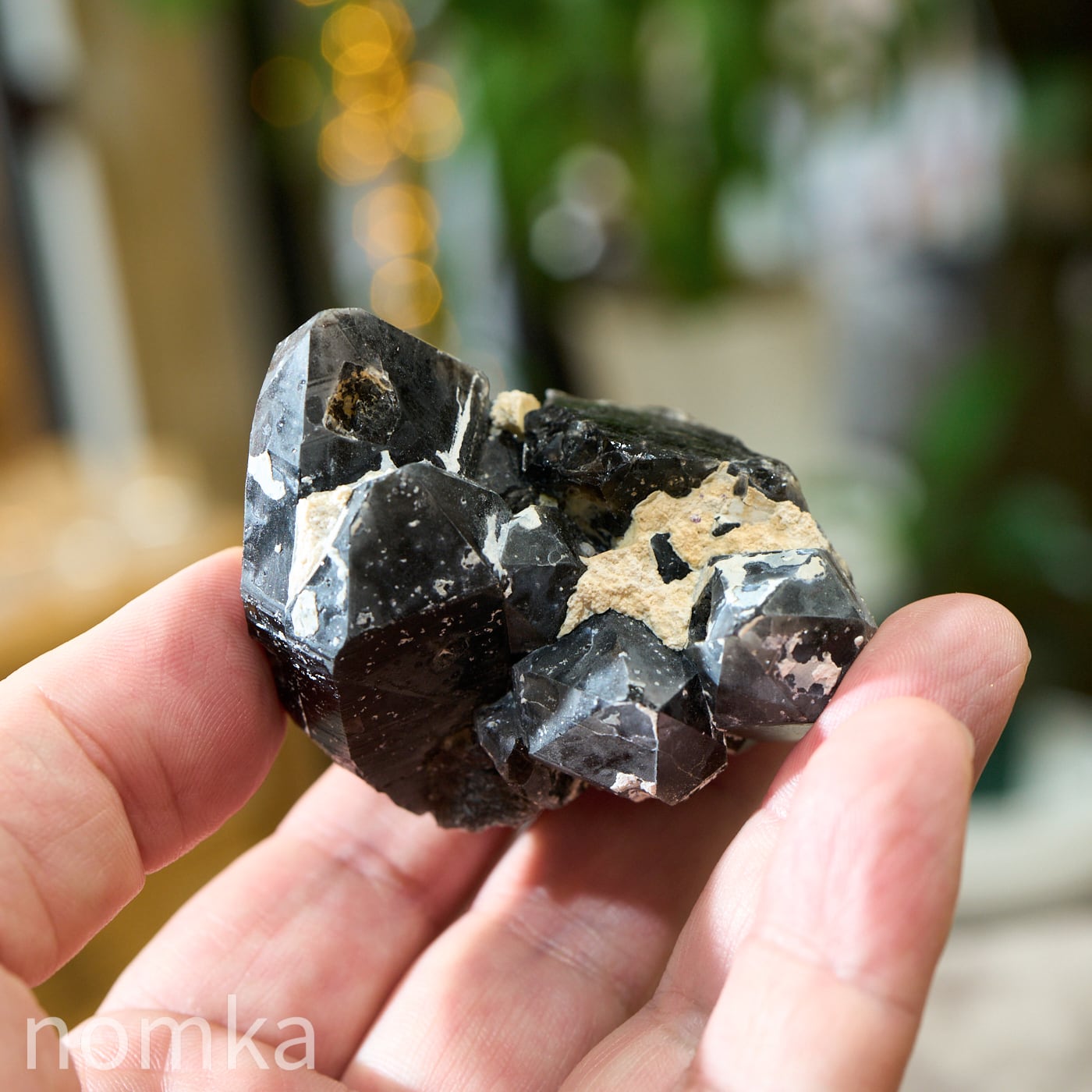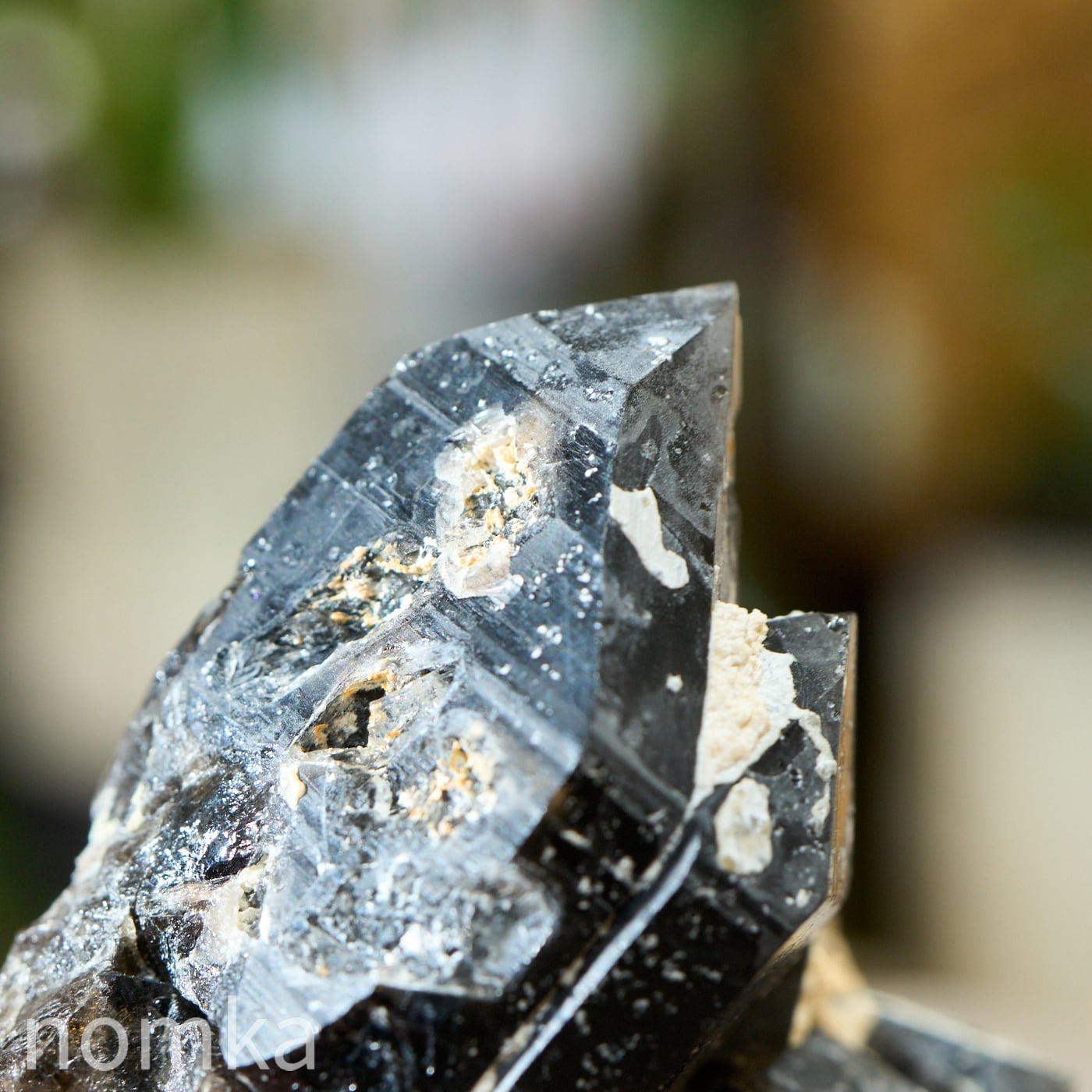 市場に出回る真っ黒な水晶の中には、人工的な照射処理で色を濃くしたものも少なくありませんが、このように他鉱物が自然な状態で共生しているものは、まさに「天然・未処理」の証。
