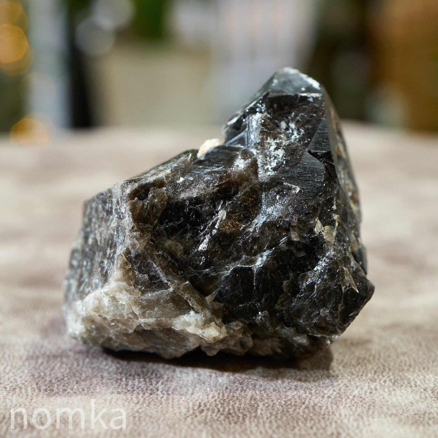 もしこの石が、後から人工的な放射線照射によって黒くされたものであれば、共生している白い鉱物までもが一緒に黒ずんでしまうことが多いのです。