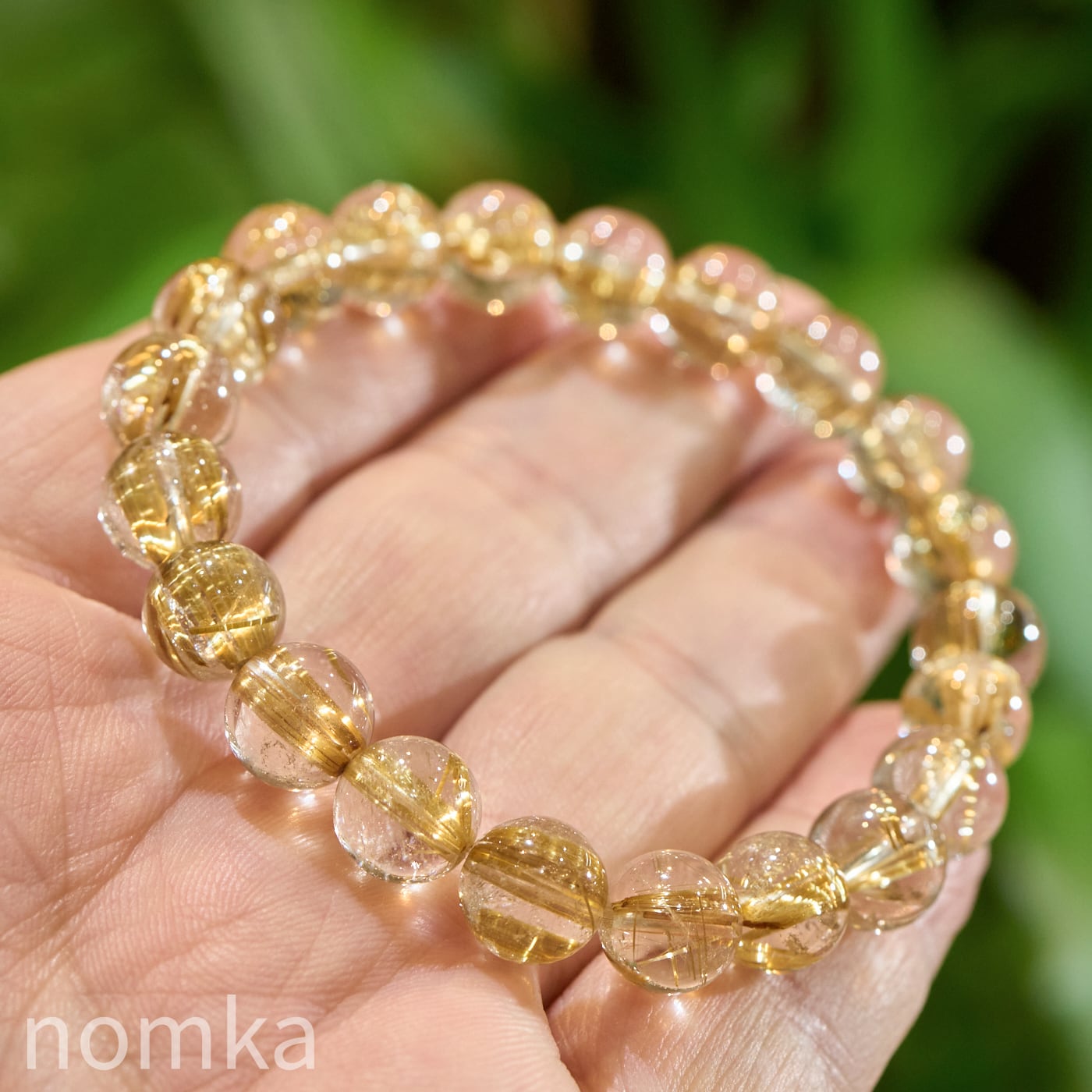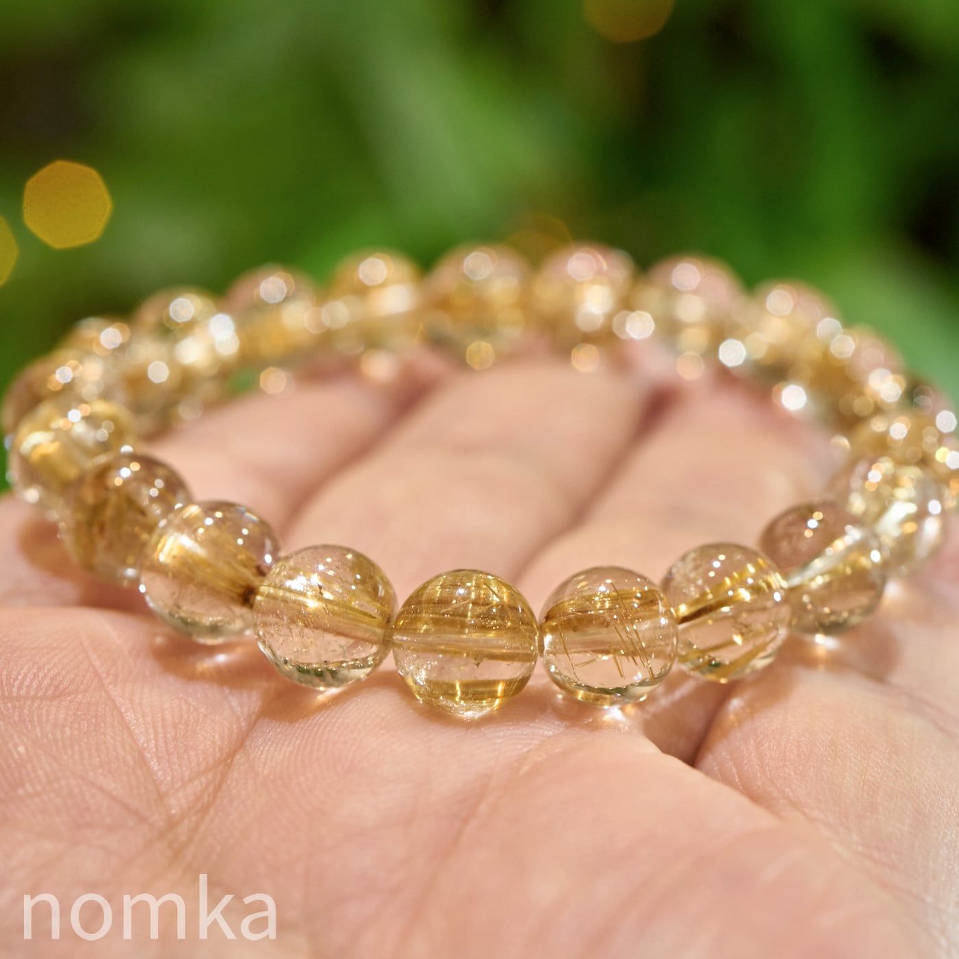 【至高の黄金、奇跡の再会】トップクオリティ キャッツアイ・タイチンルチルクォーツ 9〜9.2mm 一連ブレスレット Type-A(オールドストック)