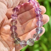 中国湖南省産のフローライトは、そのカラーバリエーションの豊富さで知られています。本品のように、複数の色がひとつのブレスレットに収まる「レインボー(マルチカラー)」タイプは、フローライトの持つ「楽しさ」や「軽やかさ」を最も象徴する存在です。