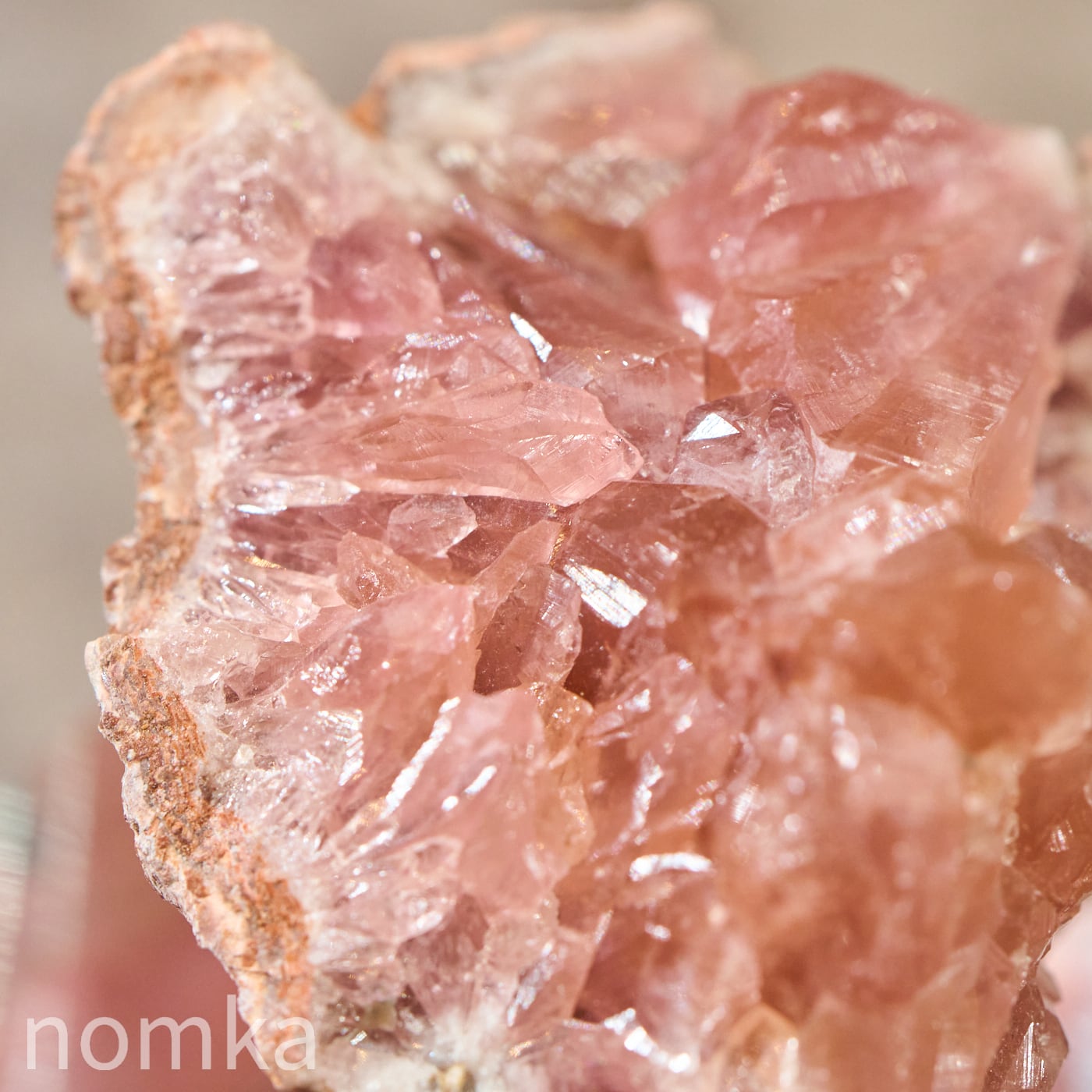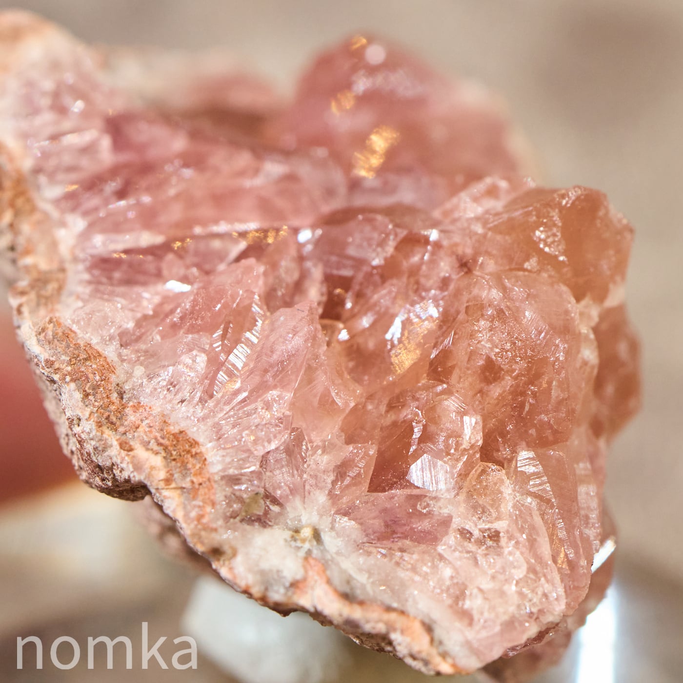 小ぶりながら、細かな結晶が密集してキラキラと光を反射し、原石ならではの力強さと、ピンクアメジスト特有の柔らかさを見事に共存させています。