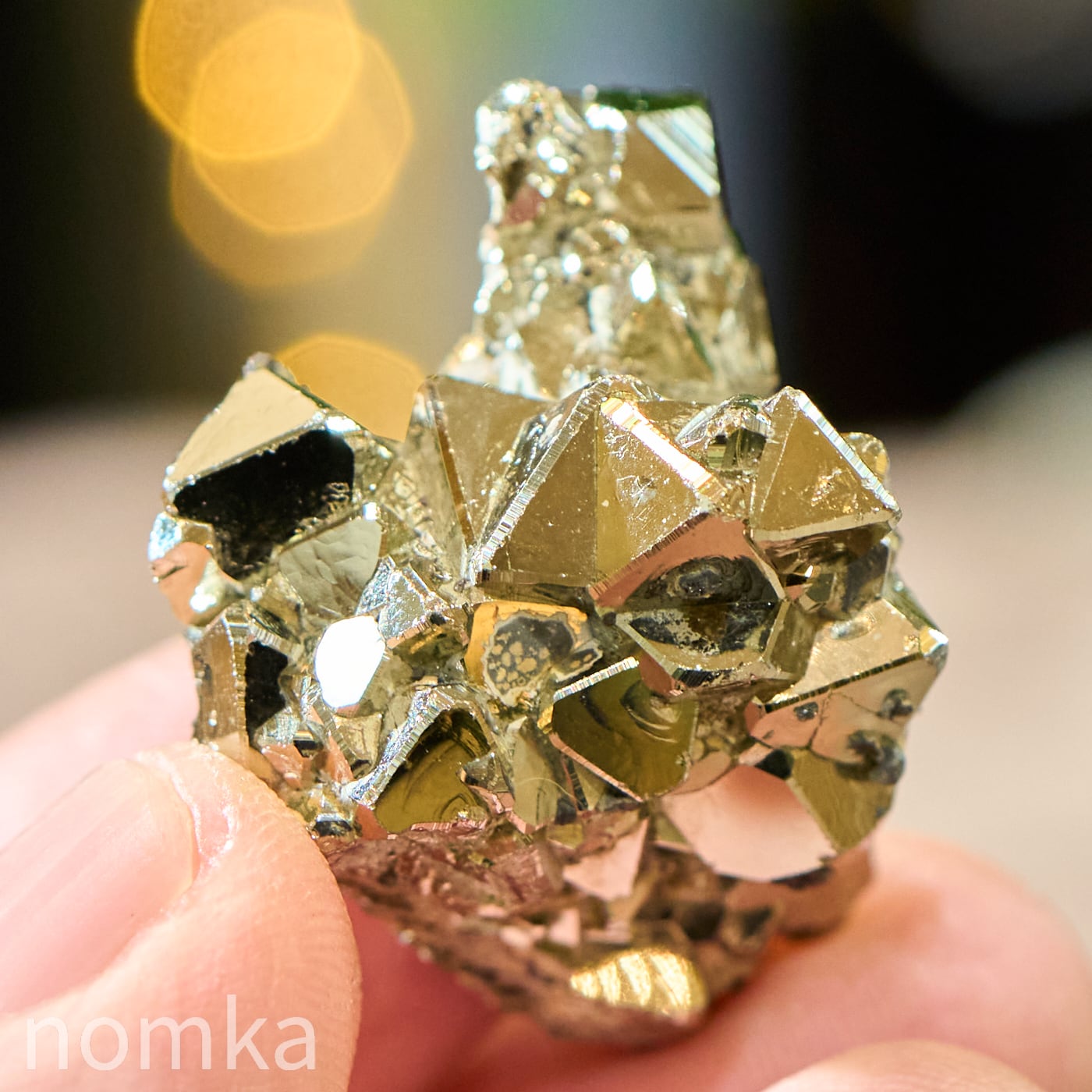 そして、さらに別の角度から見ると、中央の手前側にも結晶が大きく盛り上がり、その立体的な厚みと下部に向かって収束する形は、まさに天に向かって吠える「黄金の心臓(ハート)」のよう。