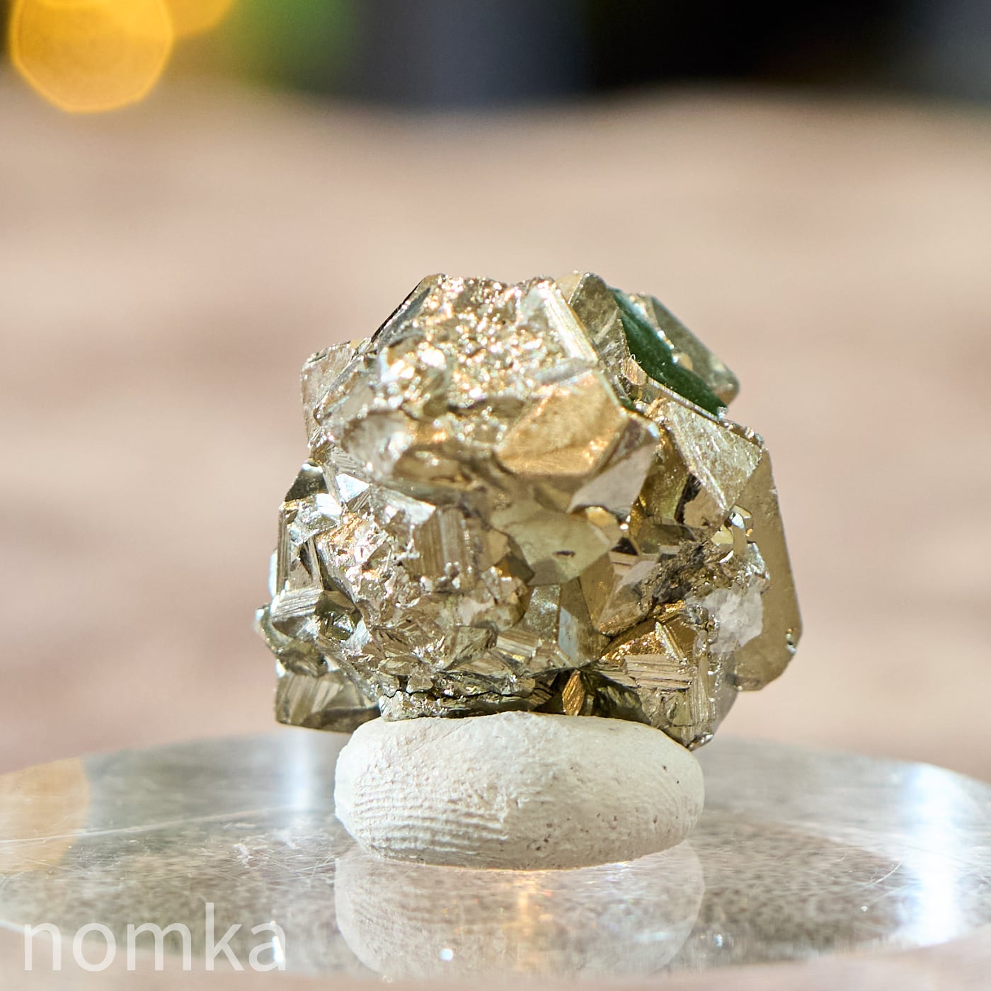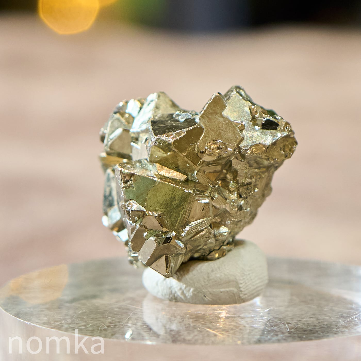 ペルー産のパイライト原石の中でも、非常にコンパクトで丸みのあるフォルムが魅力的な個体です。