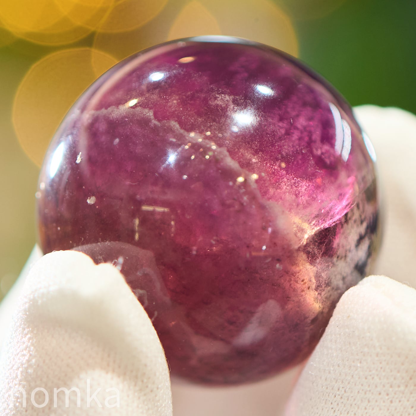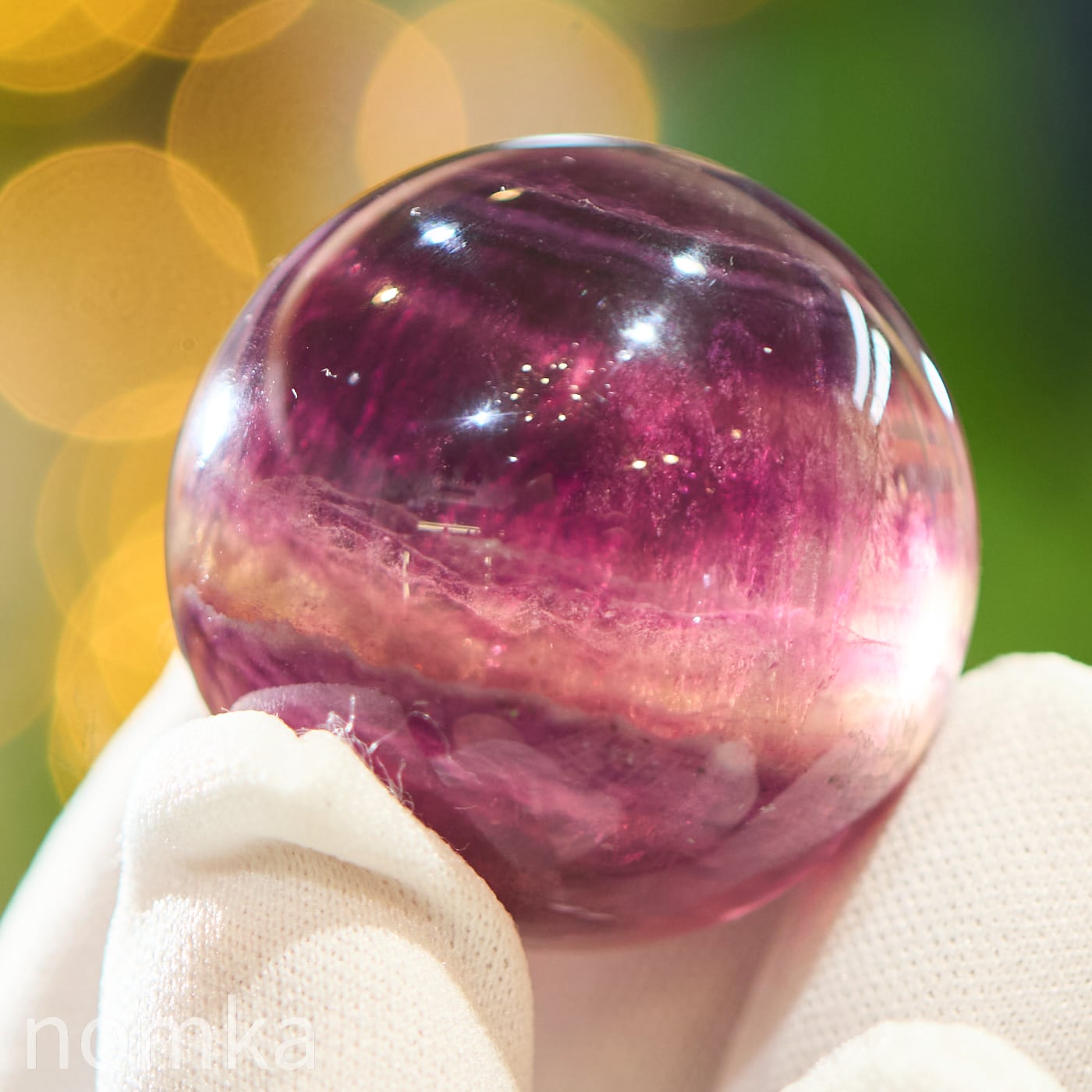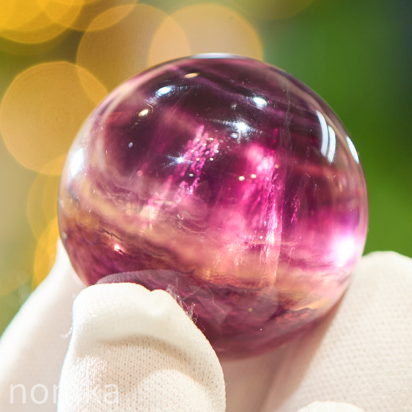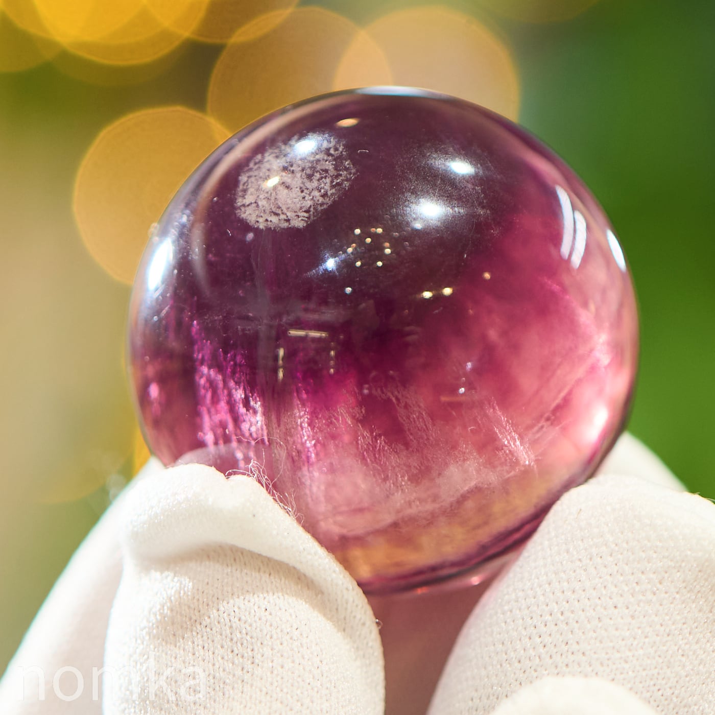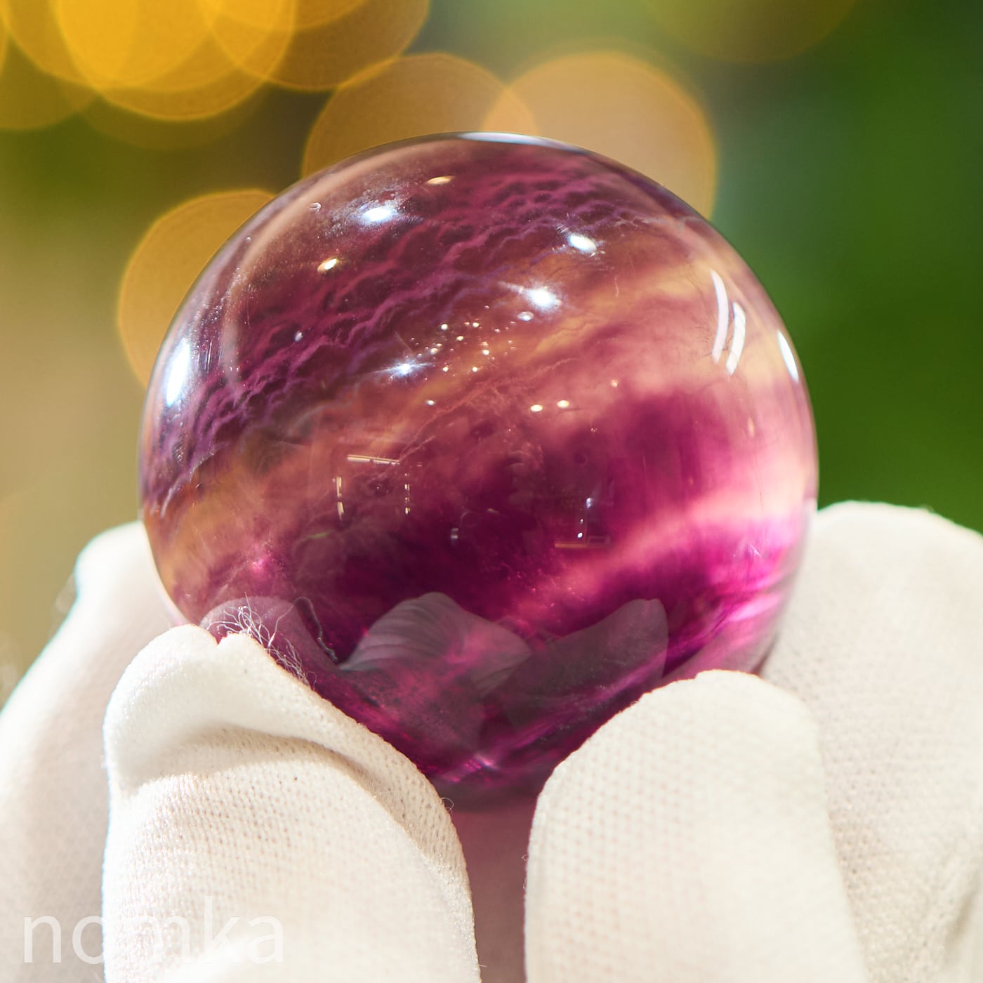 丸玉(スフィア)に磨き上げることで、平面的な結晶では見えにくかった「色の重なり」を、立体的な奥行きとともに観察できるようになります。光を通した際に、層と層の間に光が反射してキラリと輝く様子は、まさに自然が作り上げた芸術作品。
