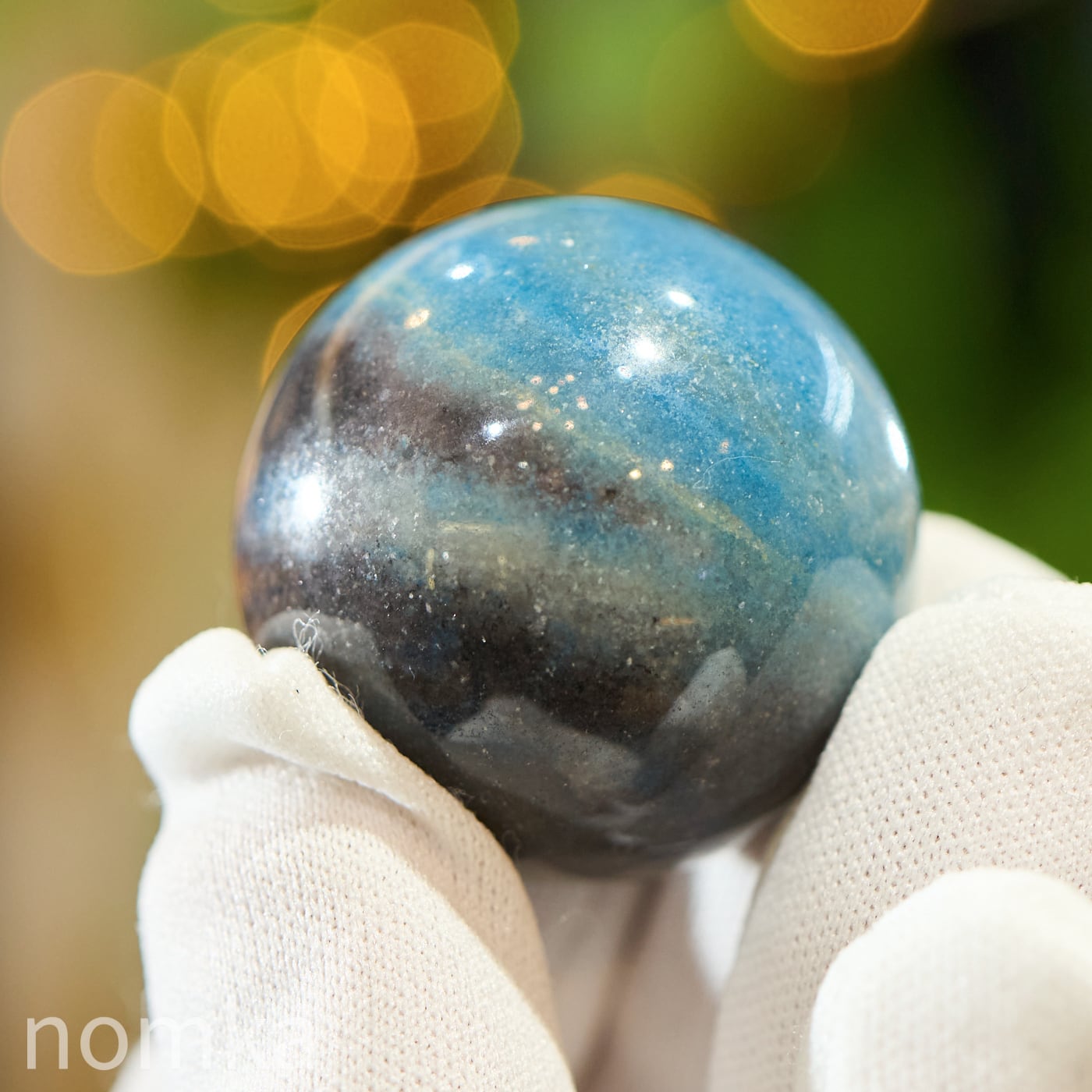 深いインディゴブルーの中に、柔らかな水色とダークグレーが美しく混ざり合う。ブラジル産の希少石「トロレアイト(トロール石)」から、手に馴染む32.1mmのスフィアが届きました。