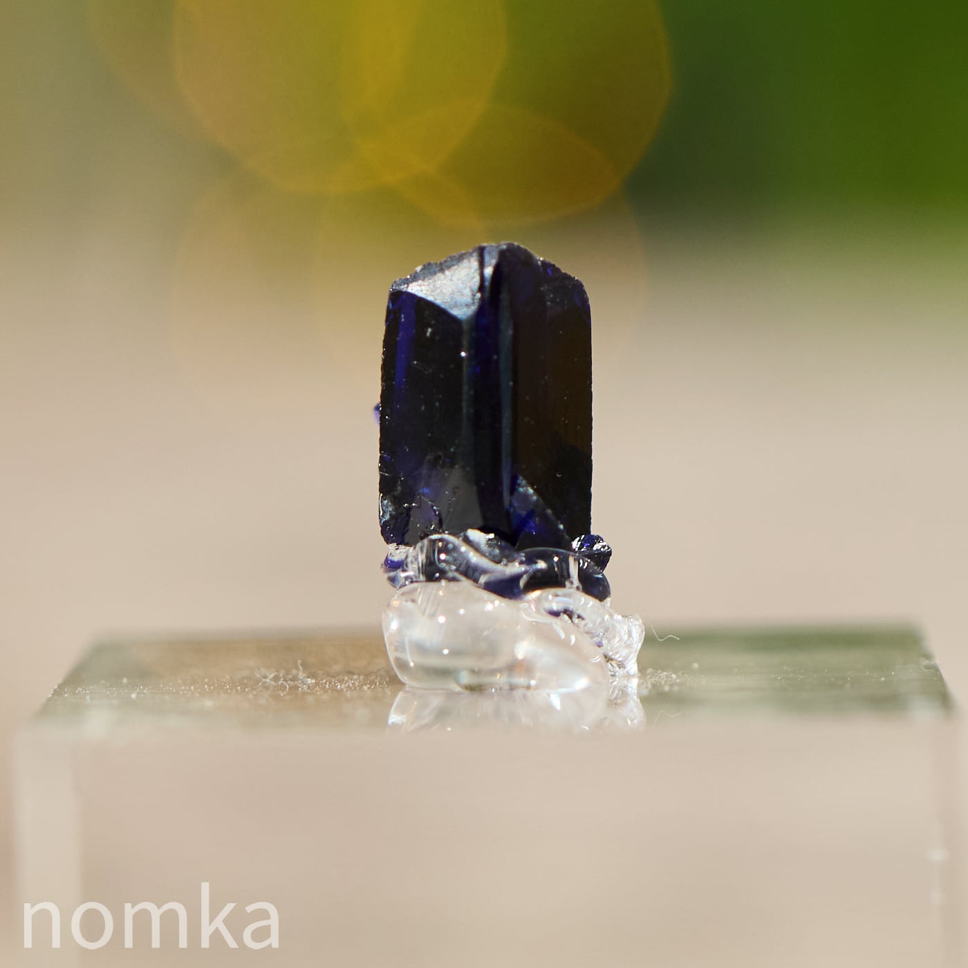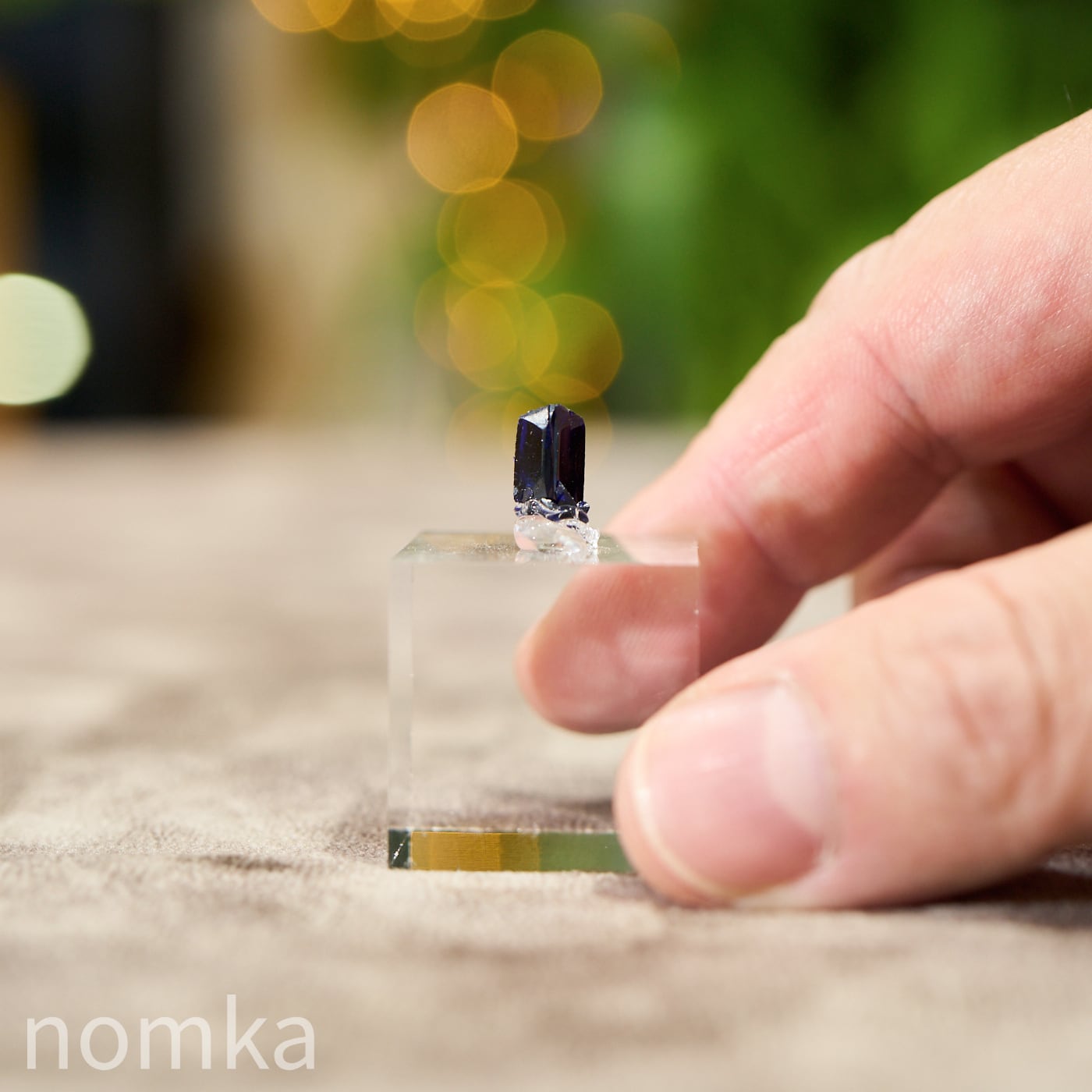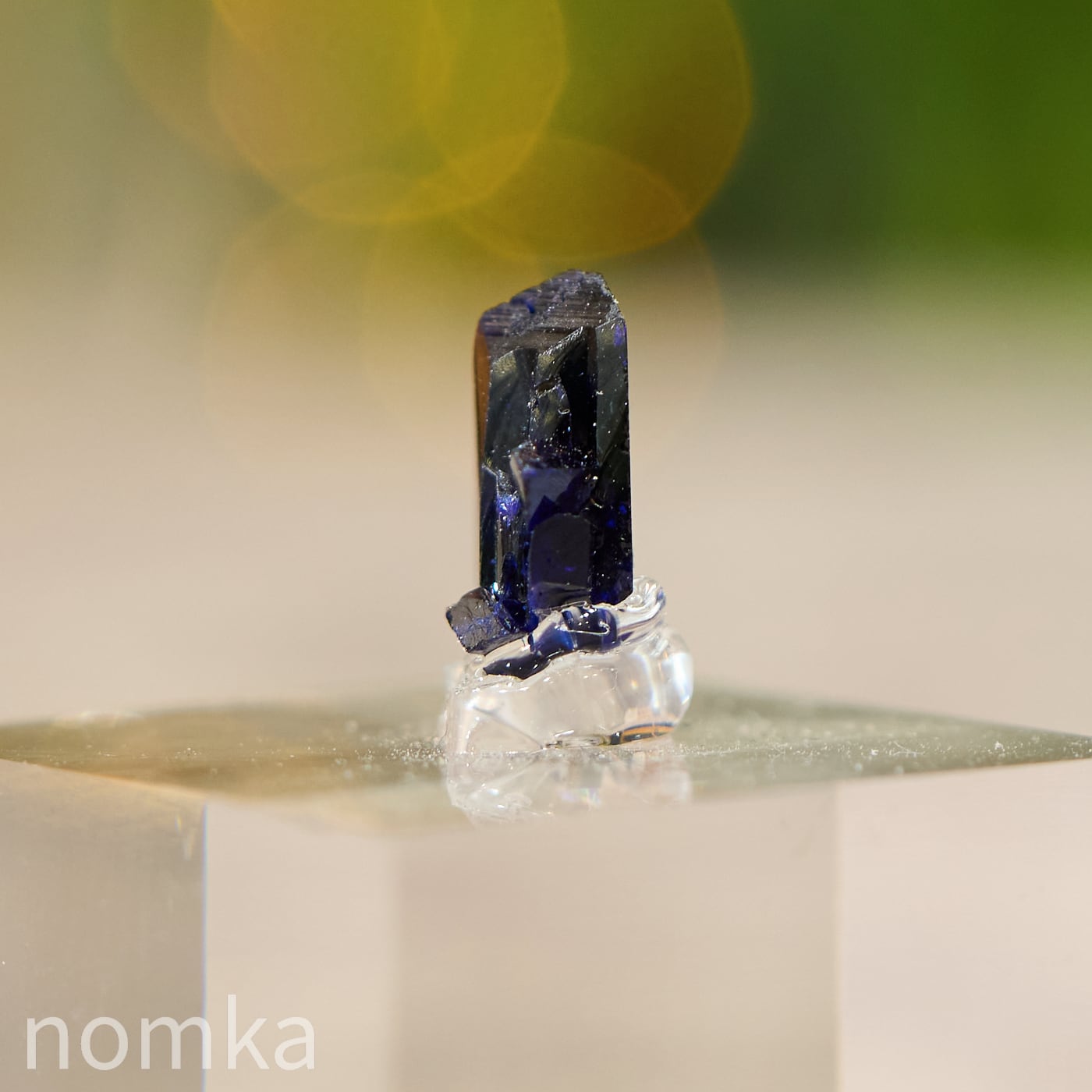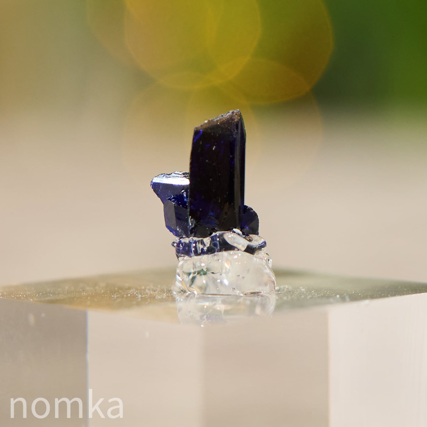 小粒ながらも、その結晶は驚くほど精緻で立体的。光を反射してキラキラと輝く姿は、まるで深い夜空からこぼれ落ちた星の破片のようです。アズライト特有の、吸い込まれるような濃密なロイヤルブルーを、この小さな結晶の中に奇跡的なバランスで閉じ込めています。