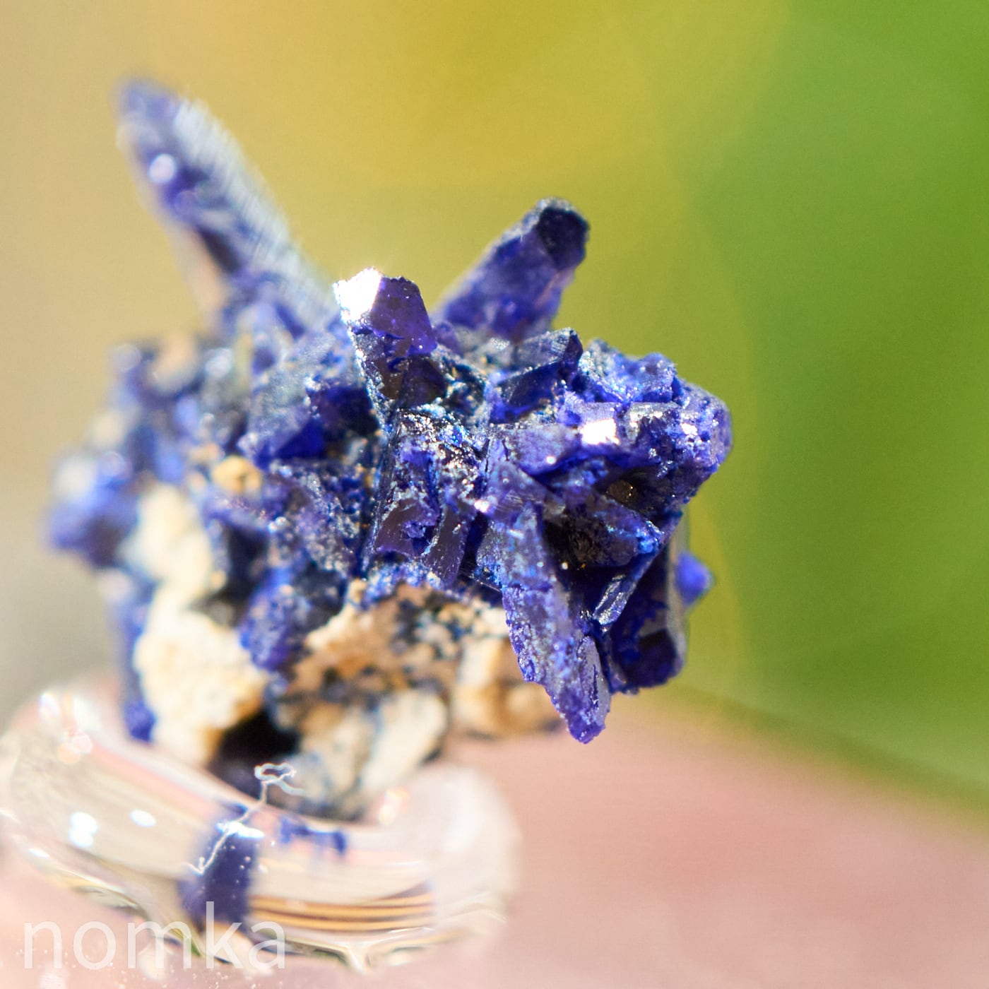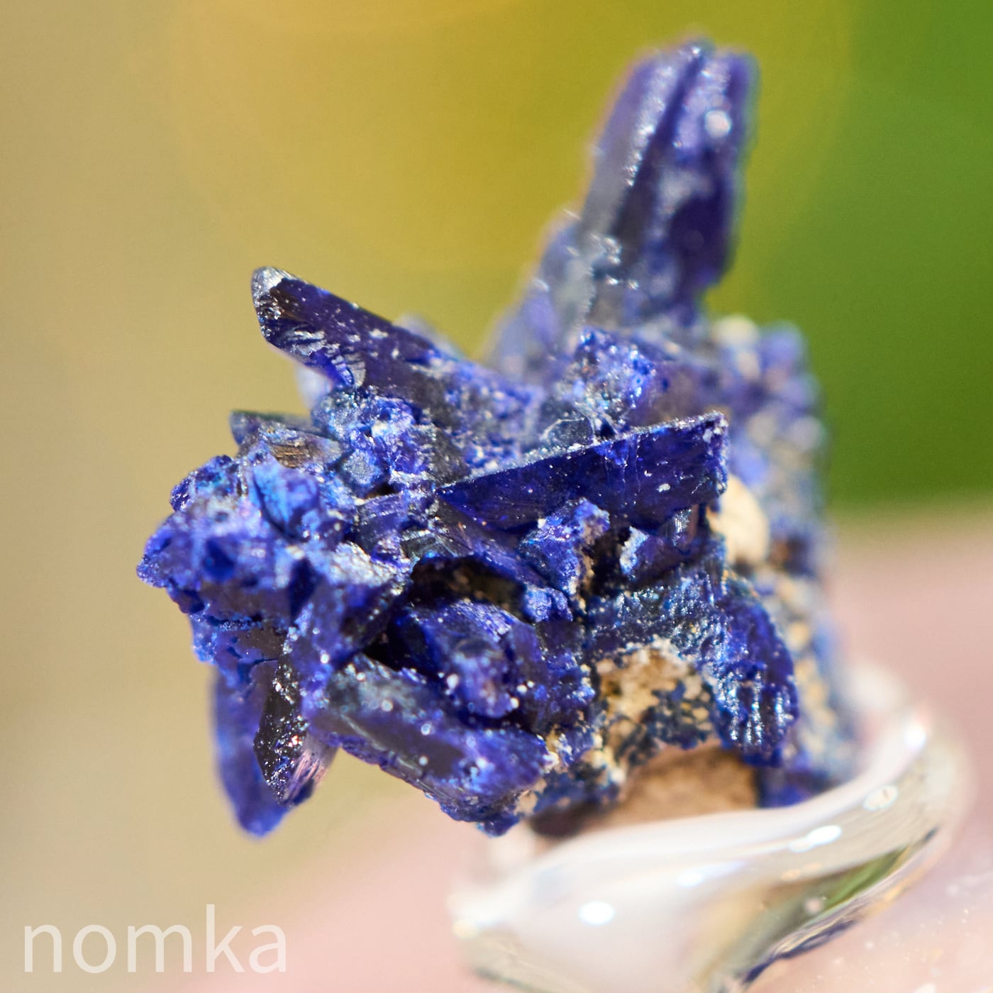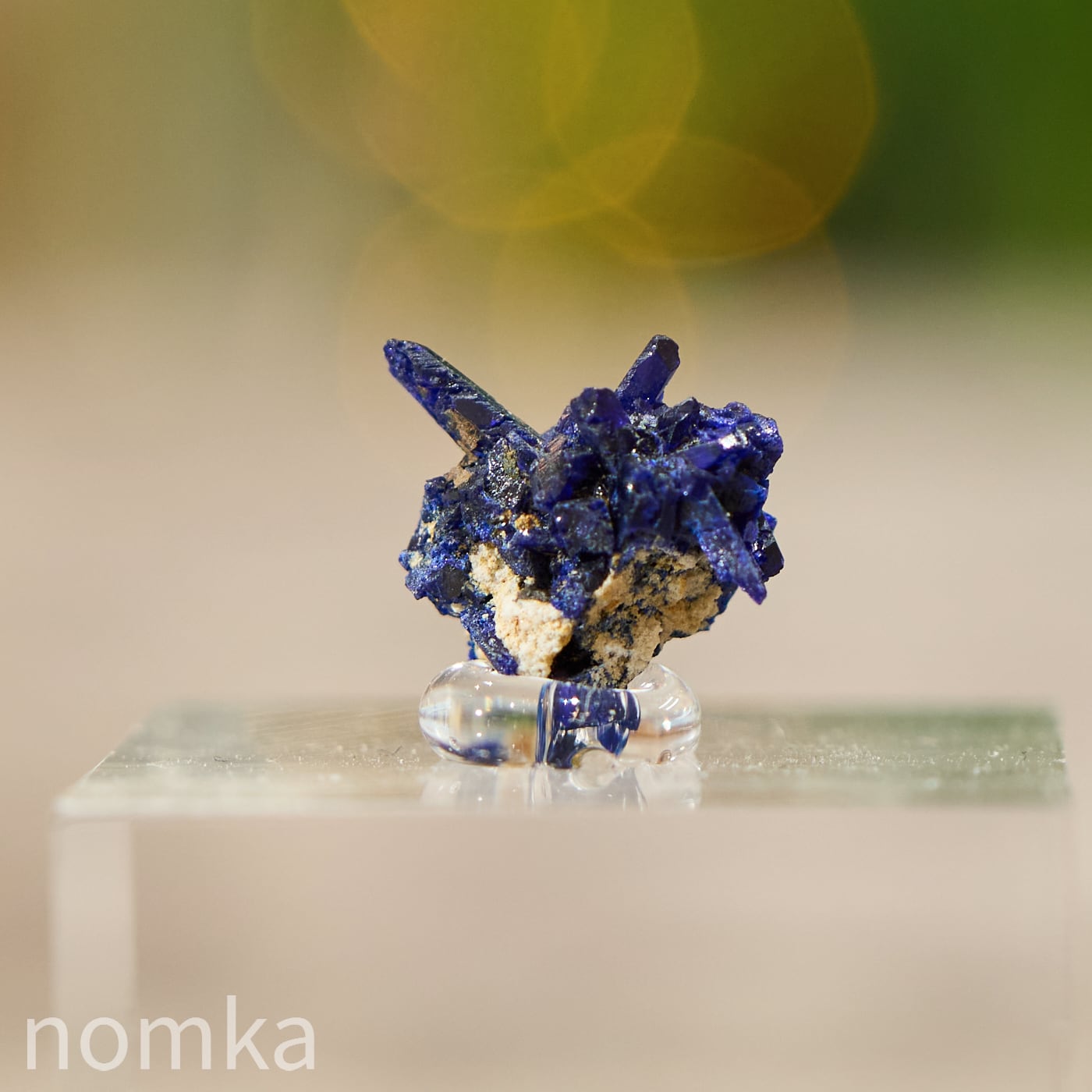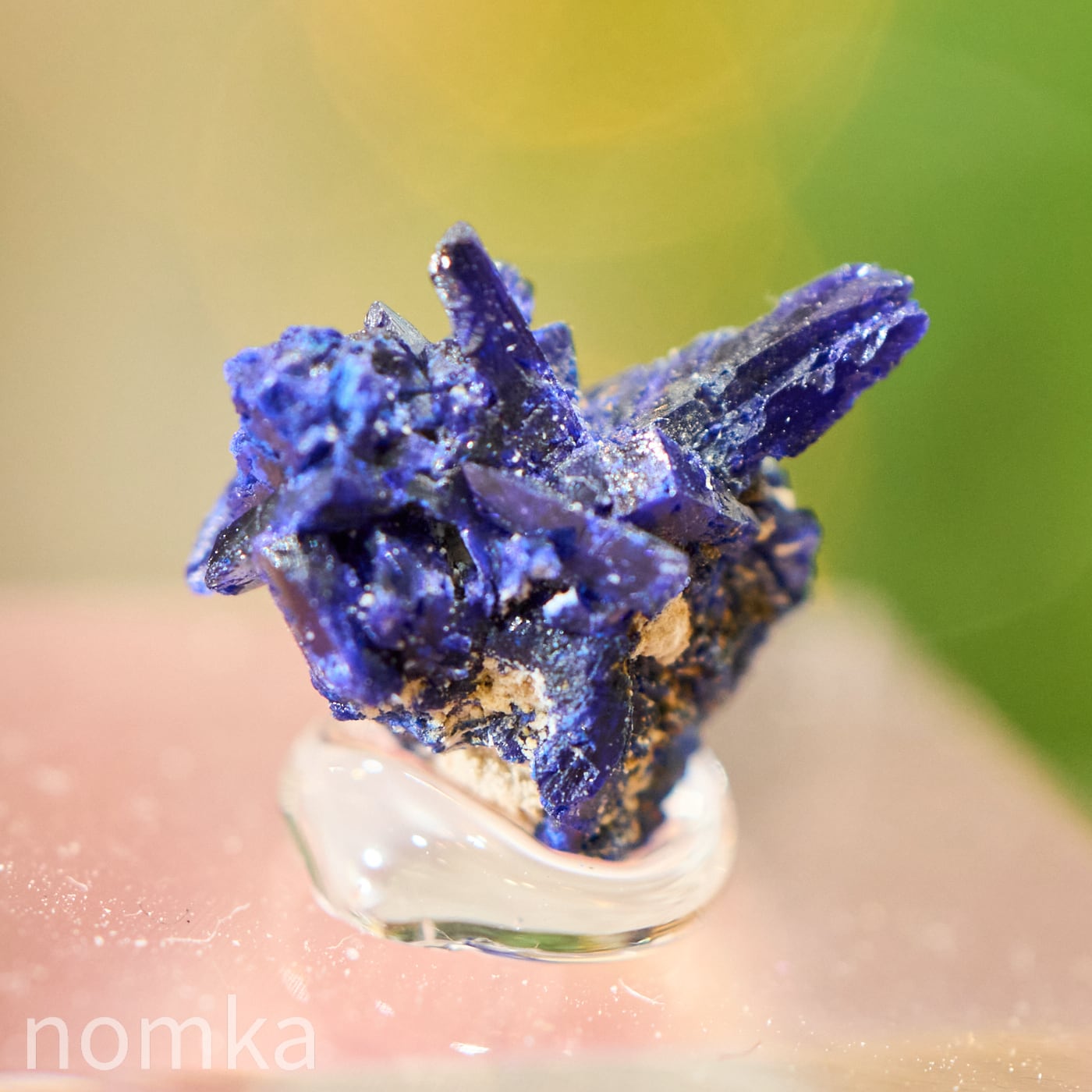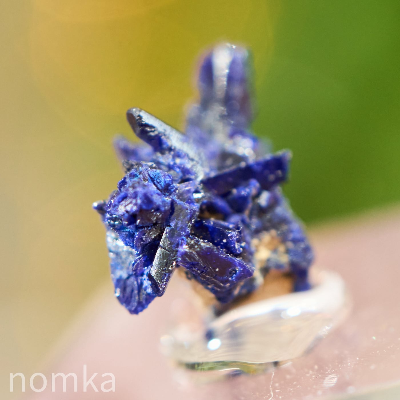 モロッコ・ケルシャン産の、まるで深い夜のしずくを固めたようなアズライト(藍銅鉱)のマイクロ標本です。