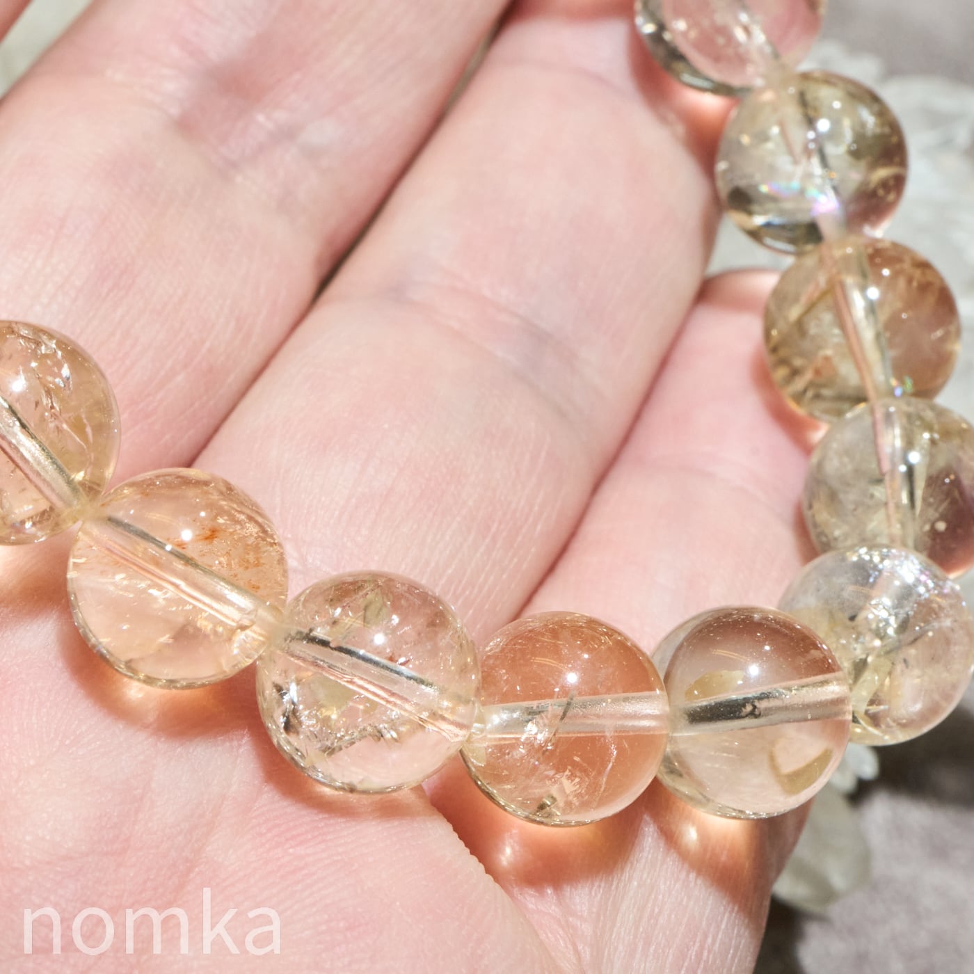 11mmという存在感のあるサイズは、一玉ごとに異なる天然のクラックや、そこから放たれるレインボー、そして力強いエネルギーをダイレクトに感じさせてくれます。