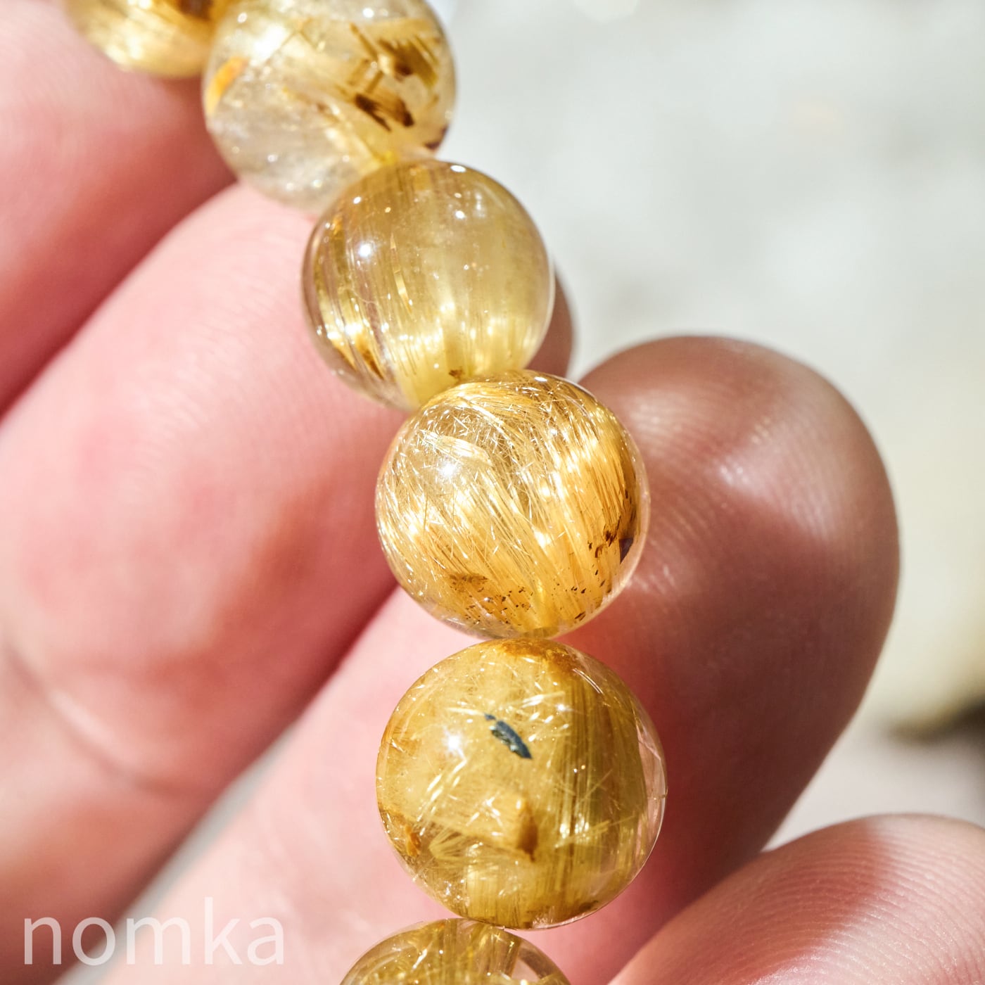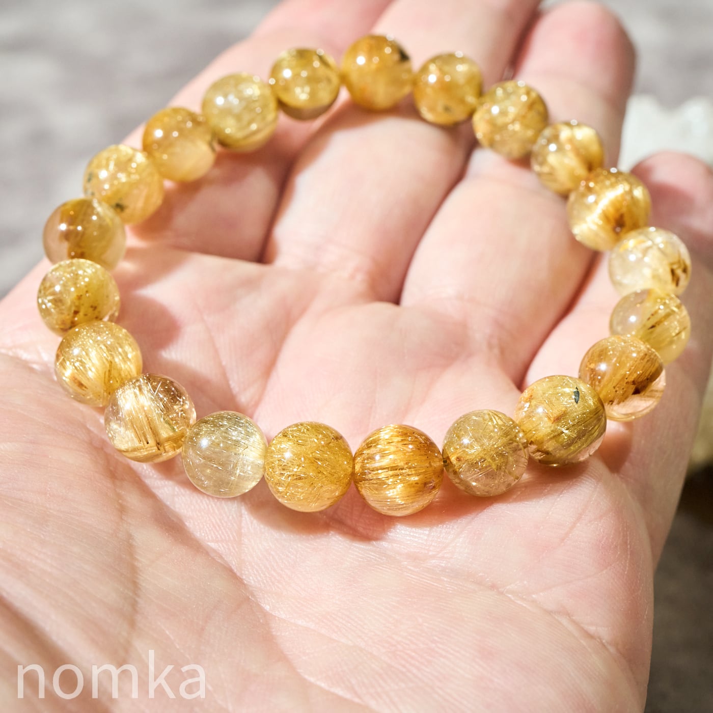 8.5-9.3mmという、男女問わず身に着けやすいサイズ感ながら、その輝きは圧倒的。タイチンルチル特有の板状の針が織りなす、重厚感のある黄金の輝きとキャッツアイの神秘性を同時に堪能できる、nOmkaが自信を持っておすすめする逸品です。