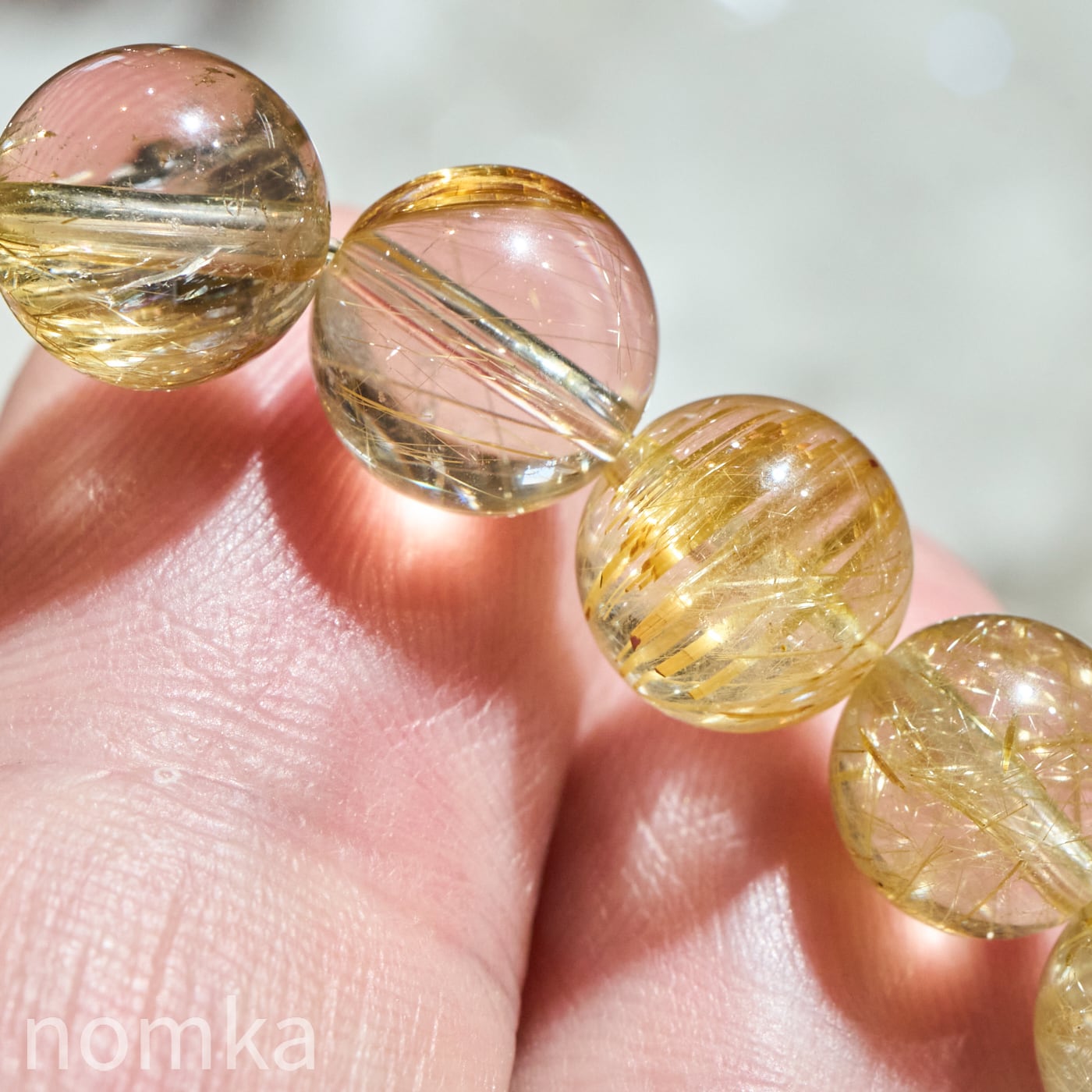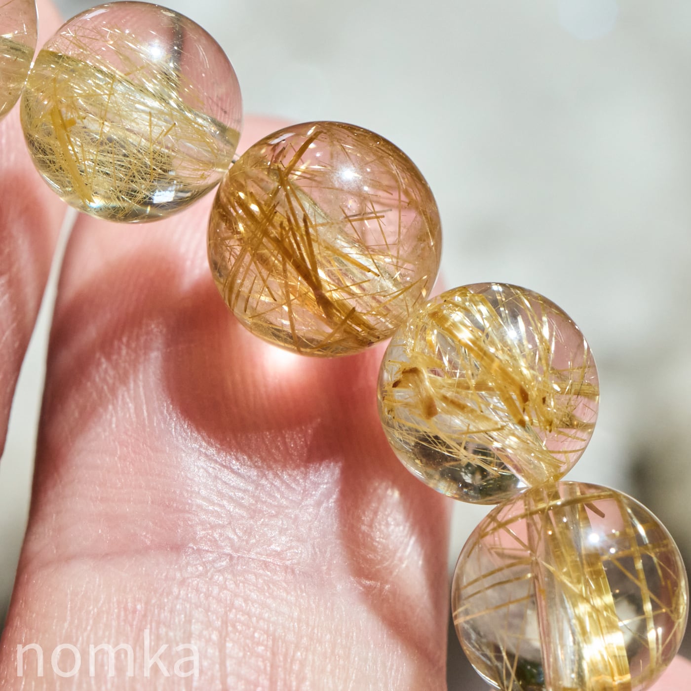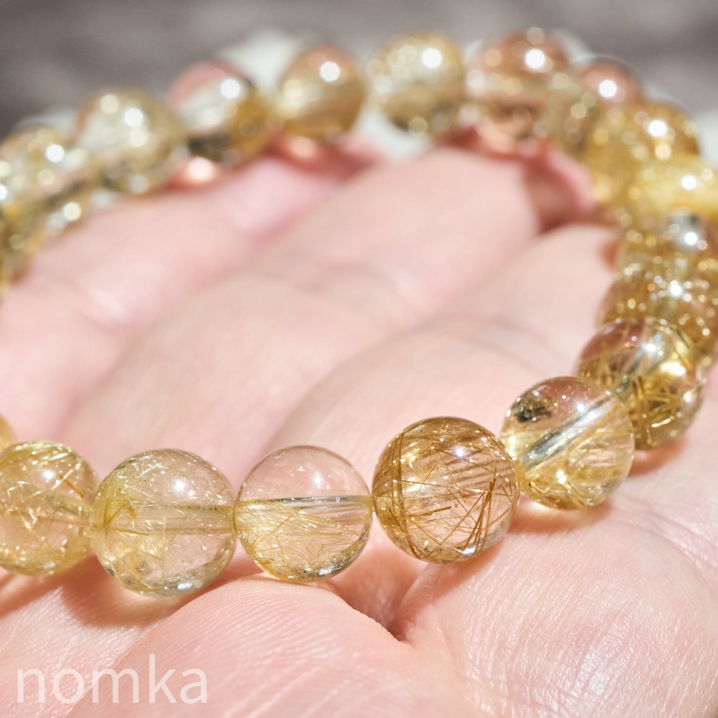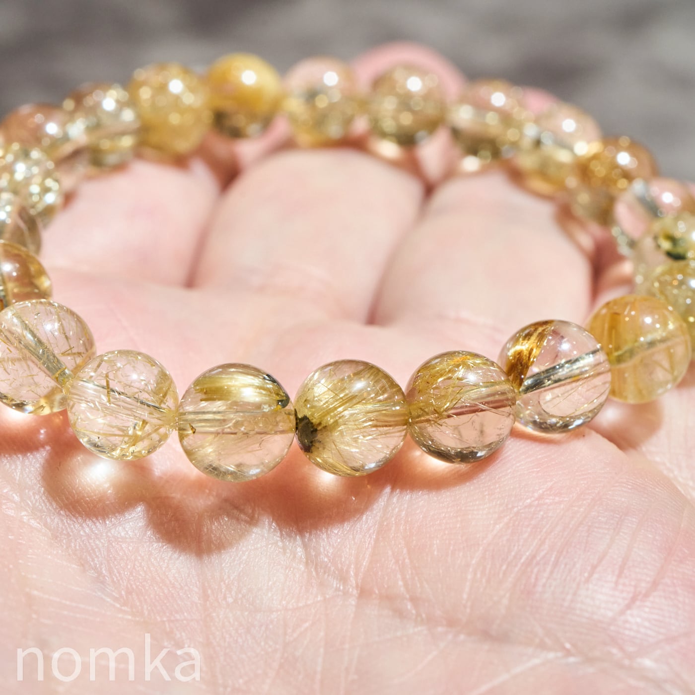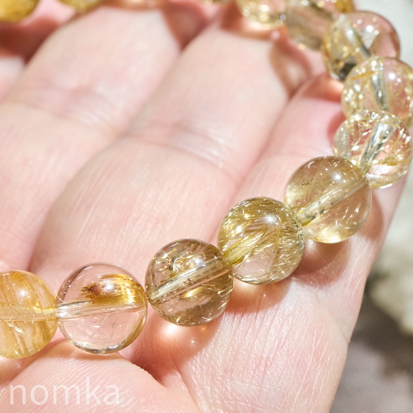 【太陽の輝きを宿す根源・ヘマタイト共生】ブラジル産 ゴールドルチルクォーツ 8.5-9mm ブレスレット AA nbra-0092