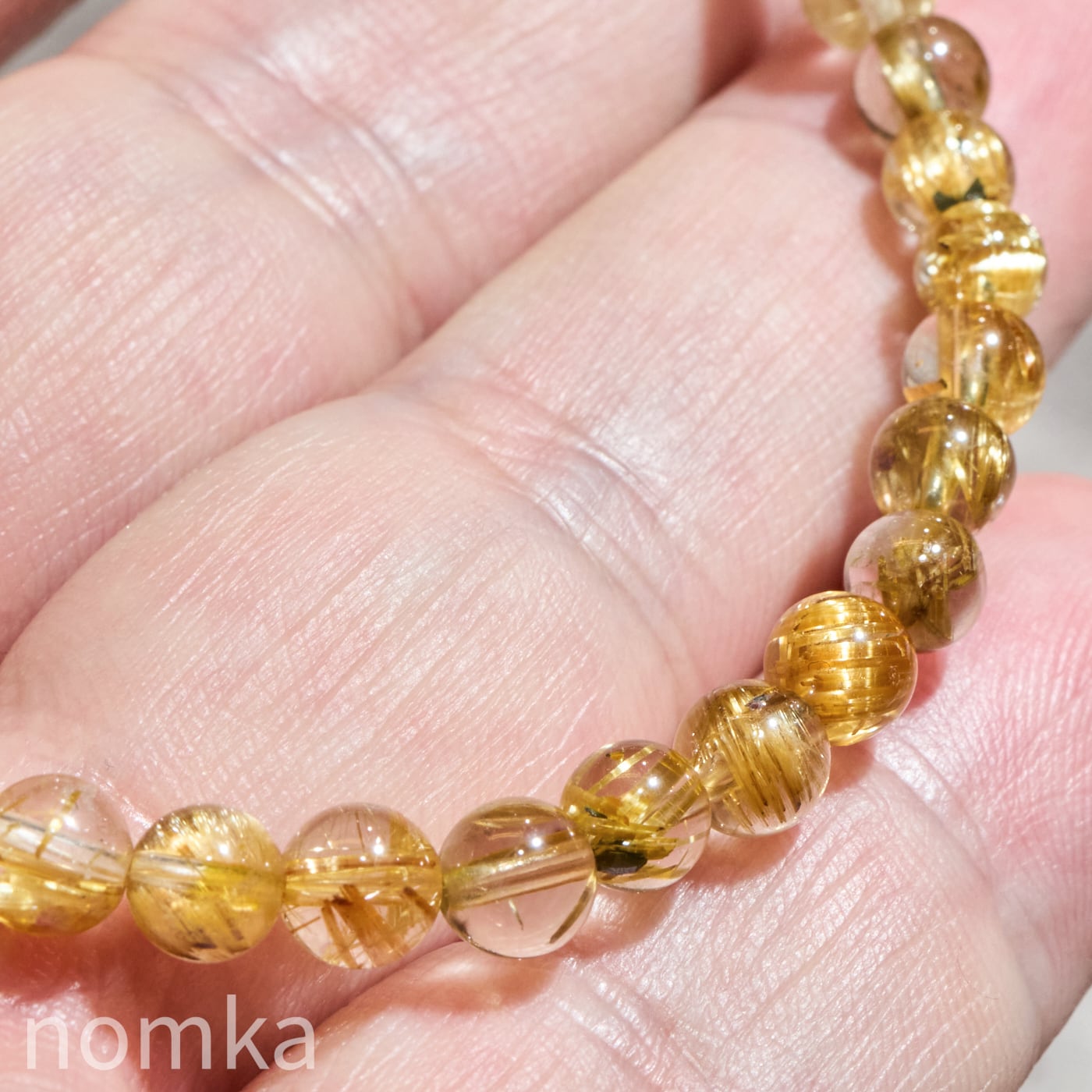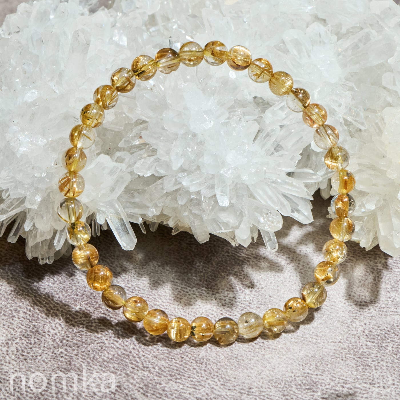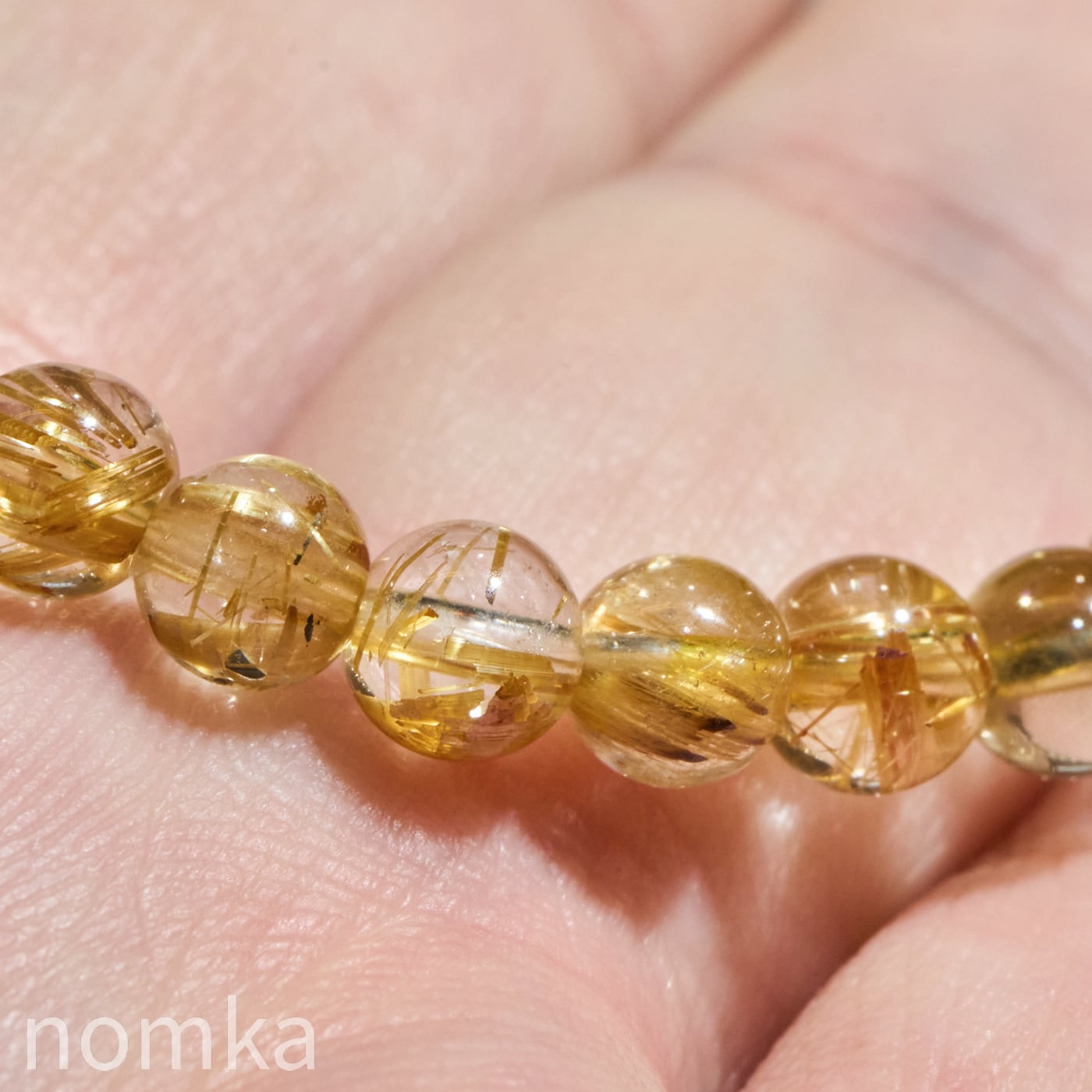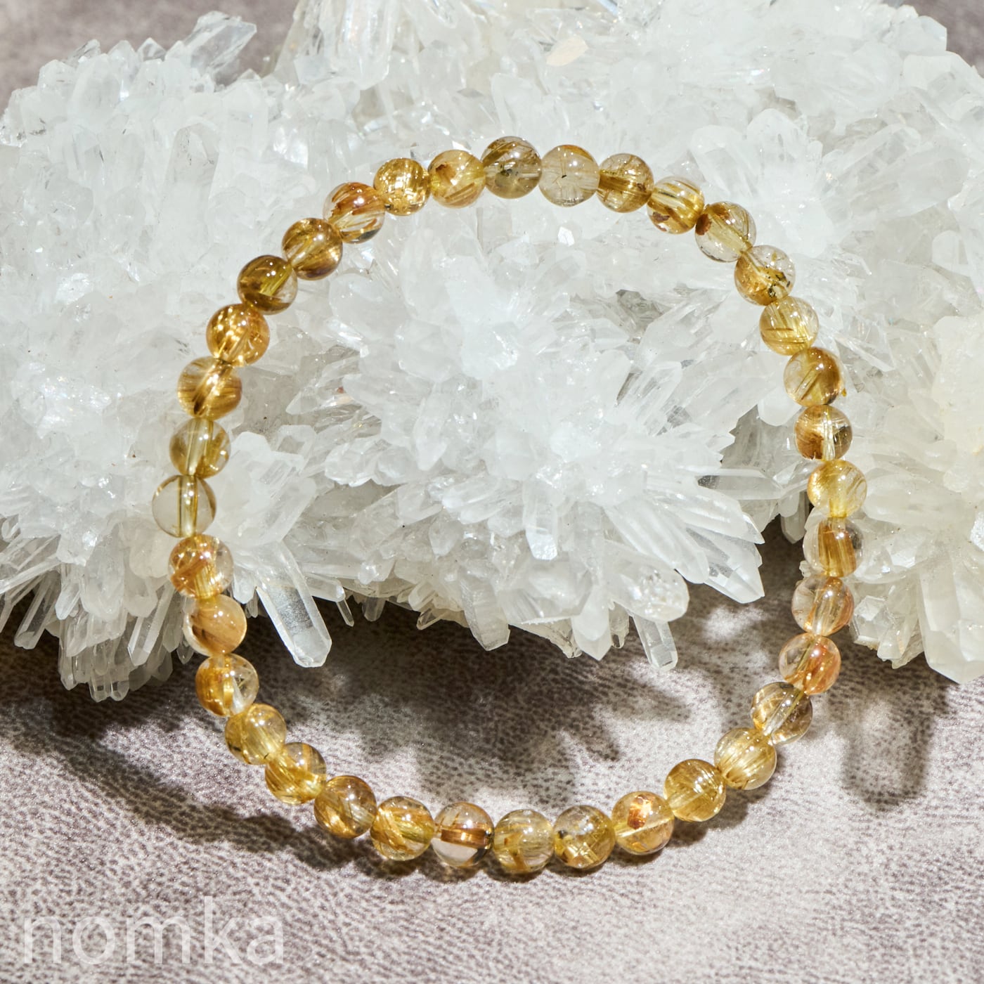 ルチルクォーツの魅力は、大粒の迫力だけではありません。本品のように5mmという小粒サイズにおいて、AAグレードの水晶の透明度と、そこに映えるルチルの針の美しさの両立は、非常にバランスが良く、洗練された印象を与えます。
