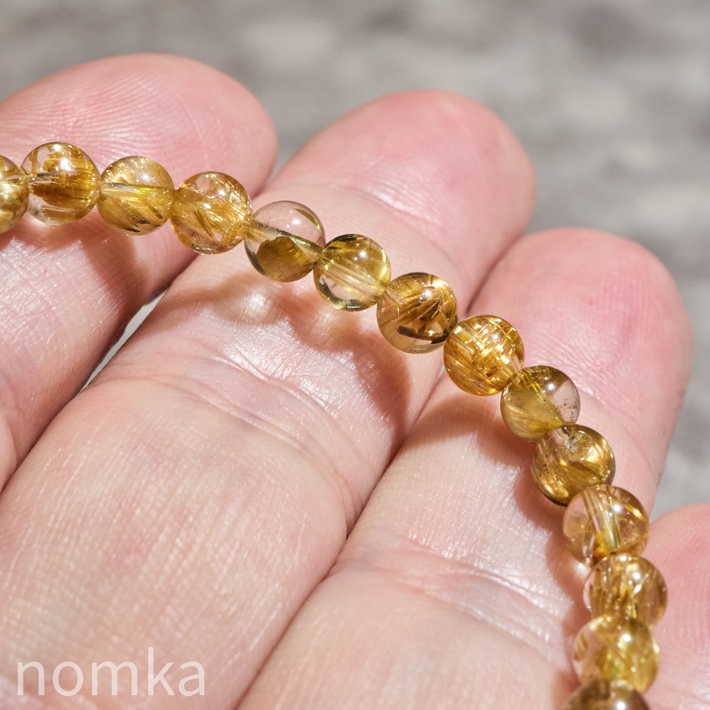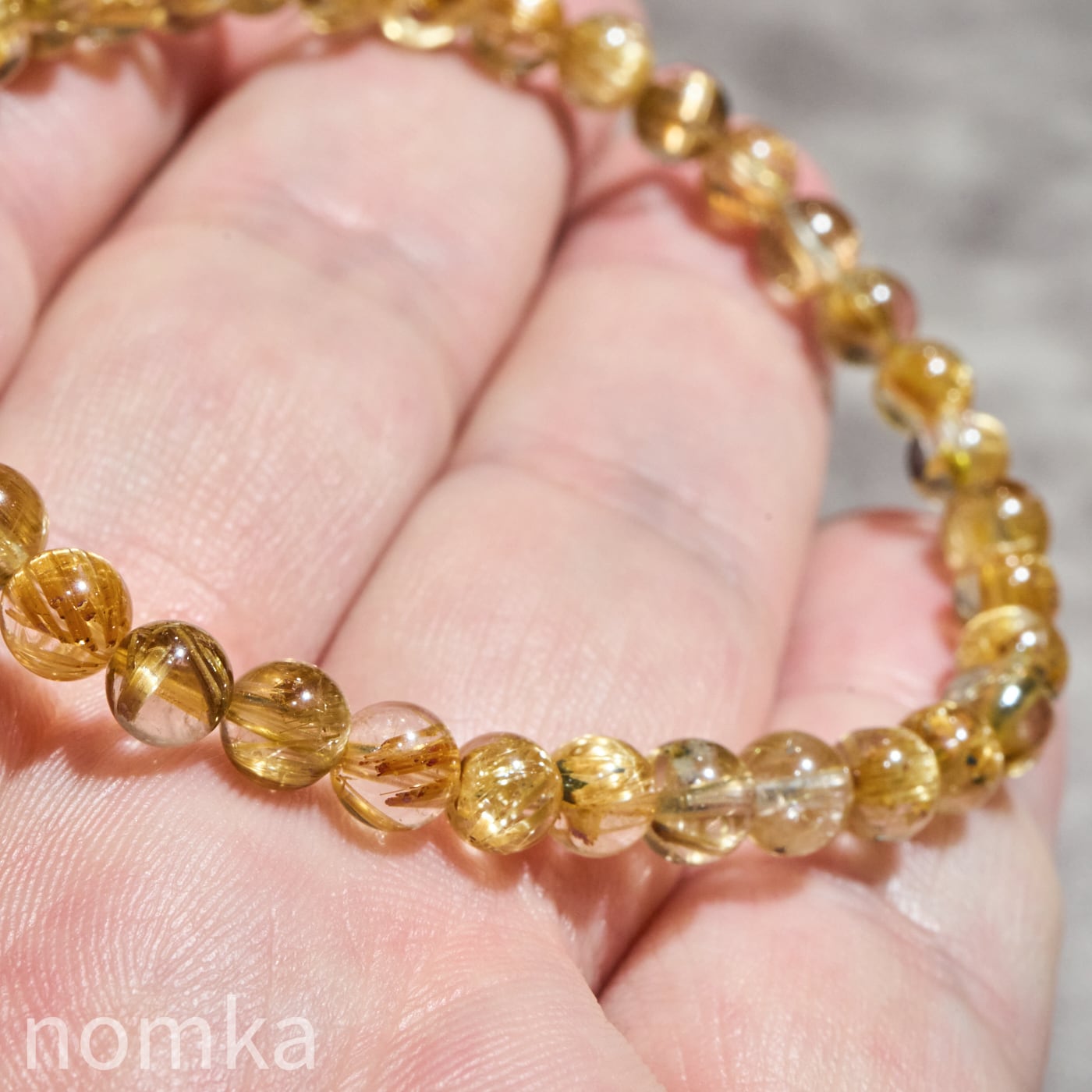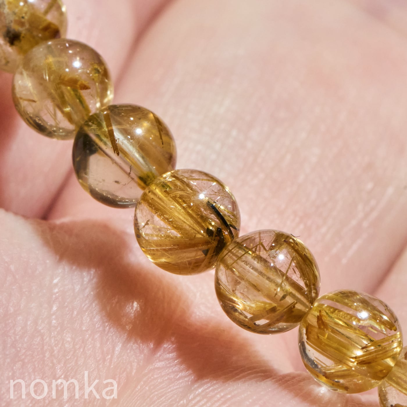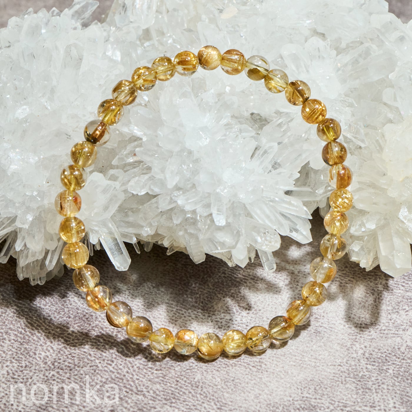 ルチルクォーツの魅力は、大粒の迫力だけではありません。本品のように5mmという小粒サイズにおいて、AAグレードの水晶の透明度と、そこに映えるルチルの針の美しさの両立は、非常にバランスが良く、洗練された印象を与えます。