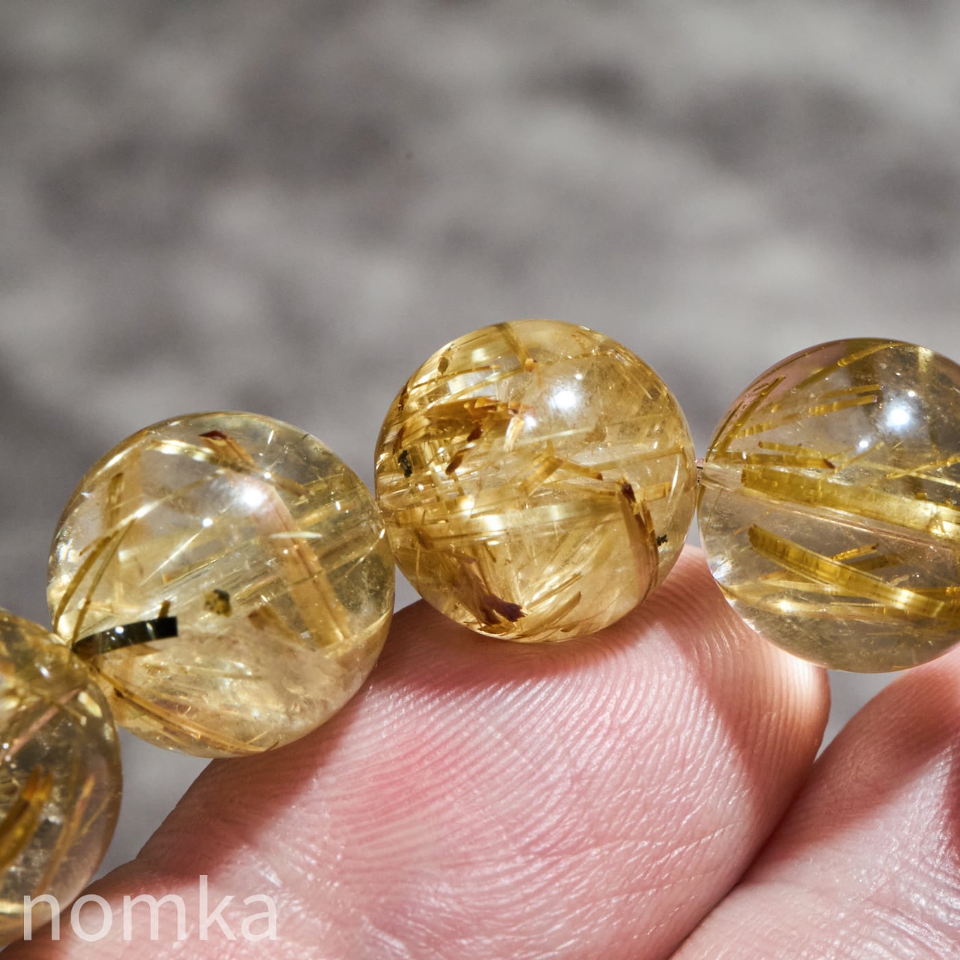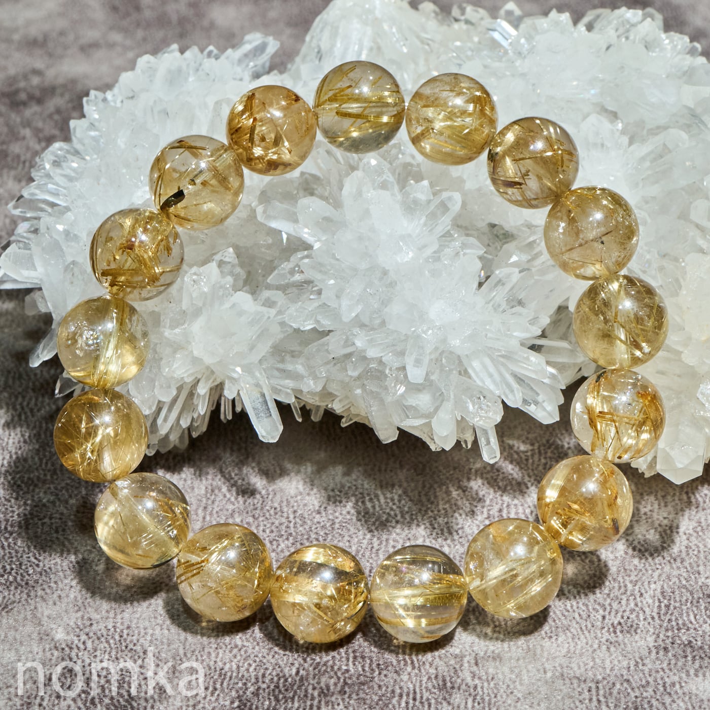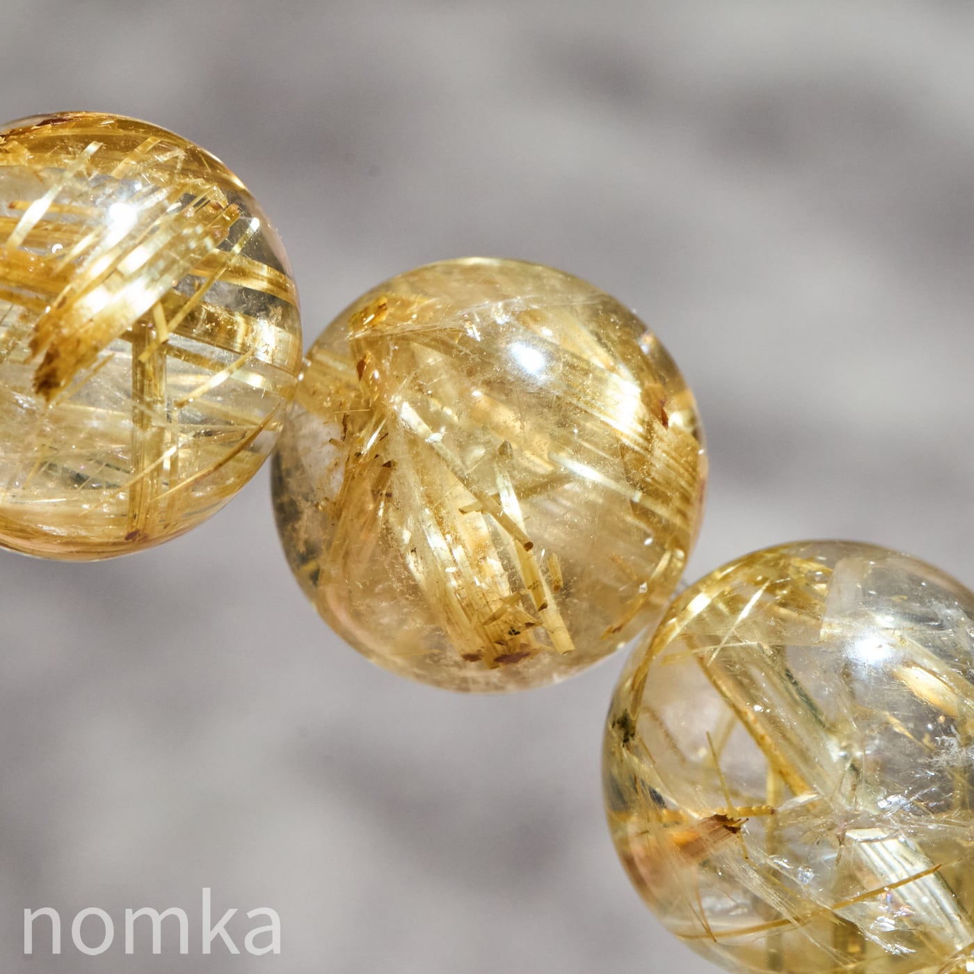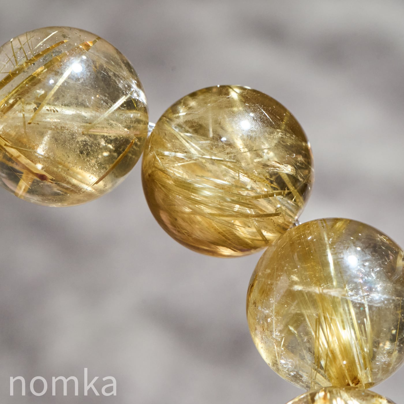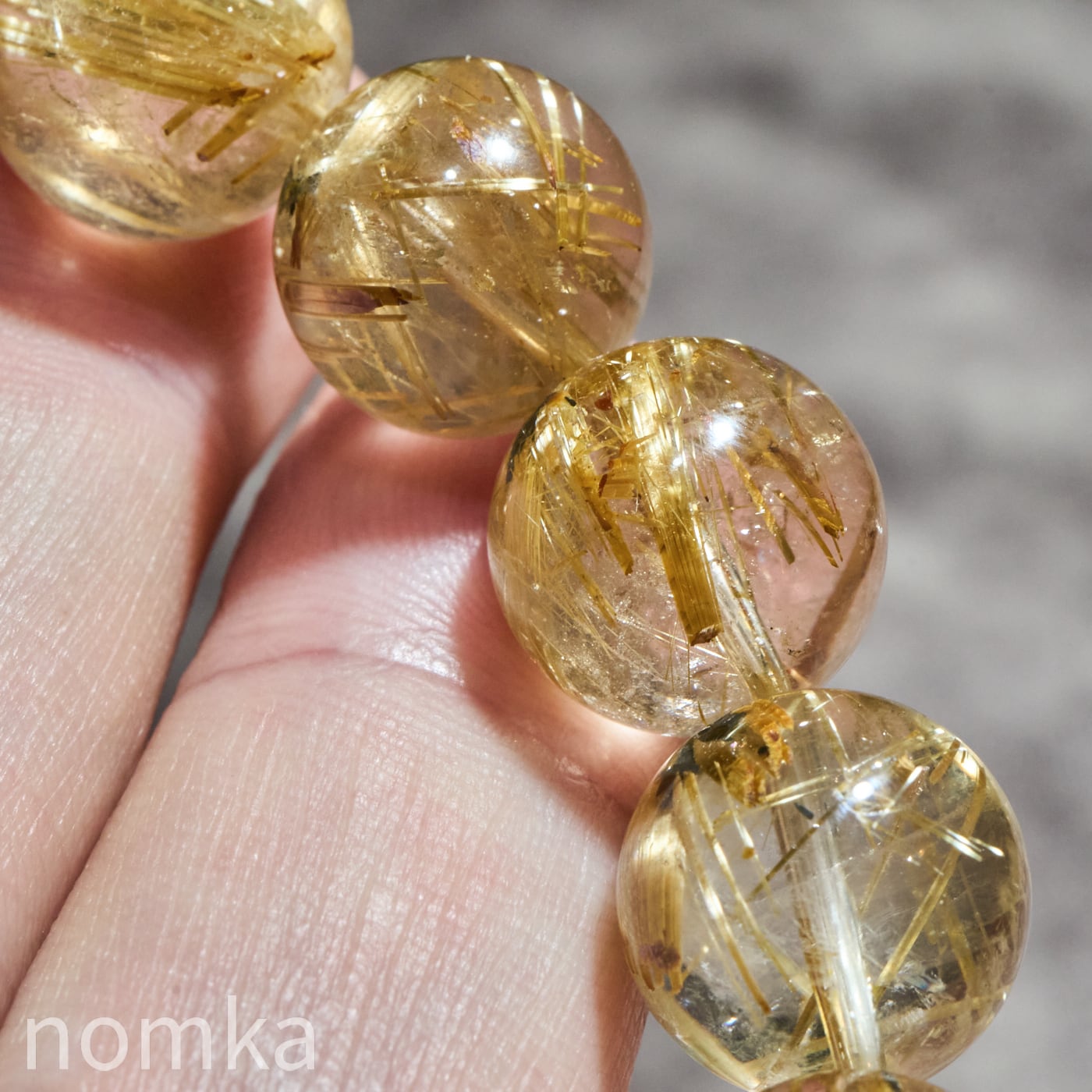 12mmを超える大玉において、これほどの透明度と針の太さを両立させるのは至難の業です。小さな珠では表現しきれない、ルチルの「成長の軌跡」が手に取るように分かるのは大玉だけの特権です。