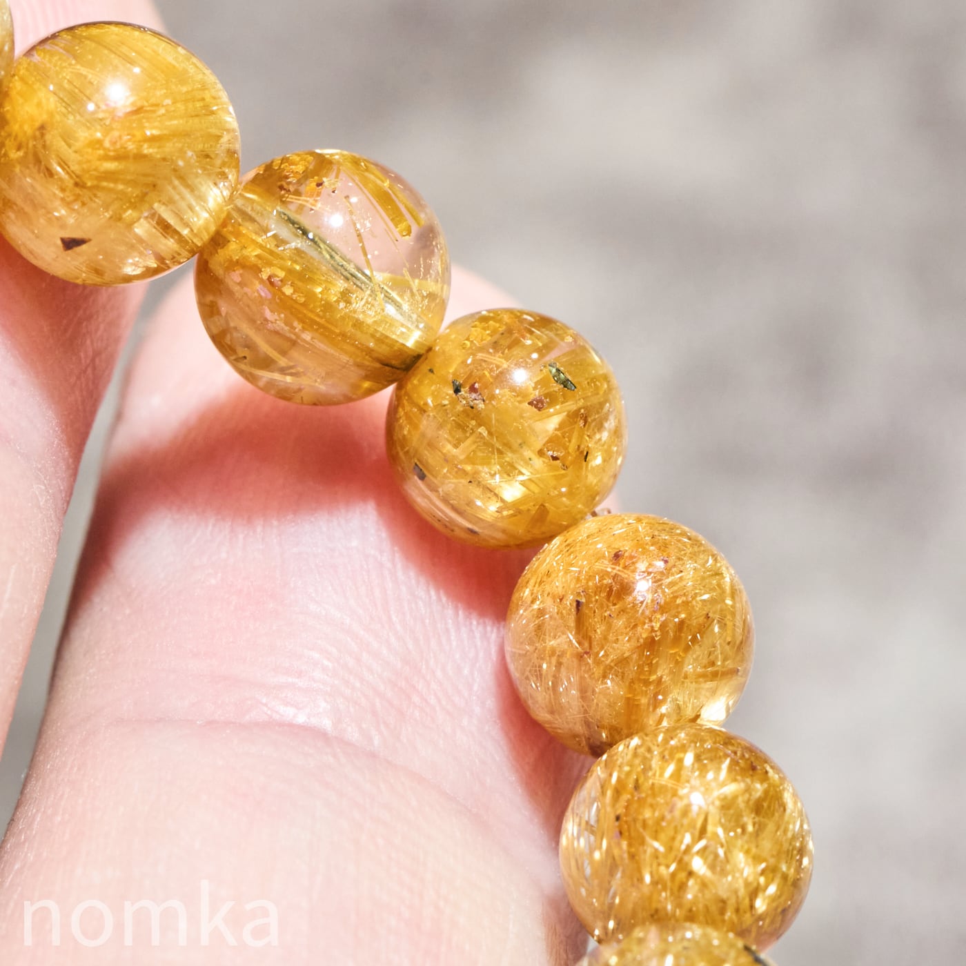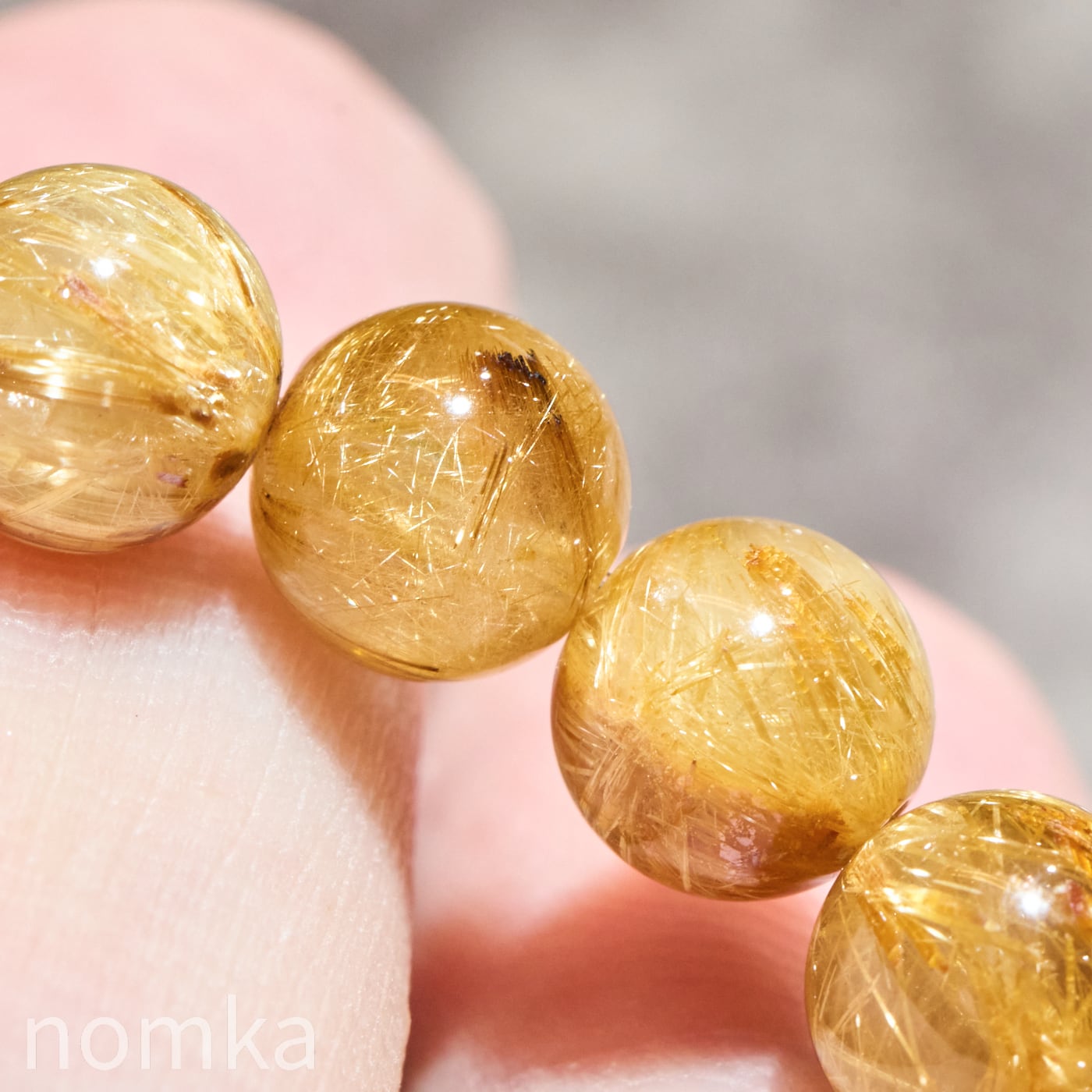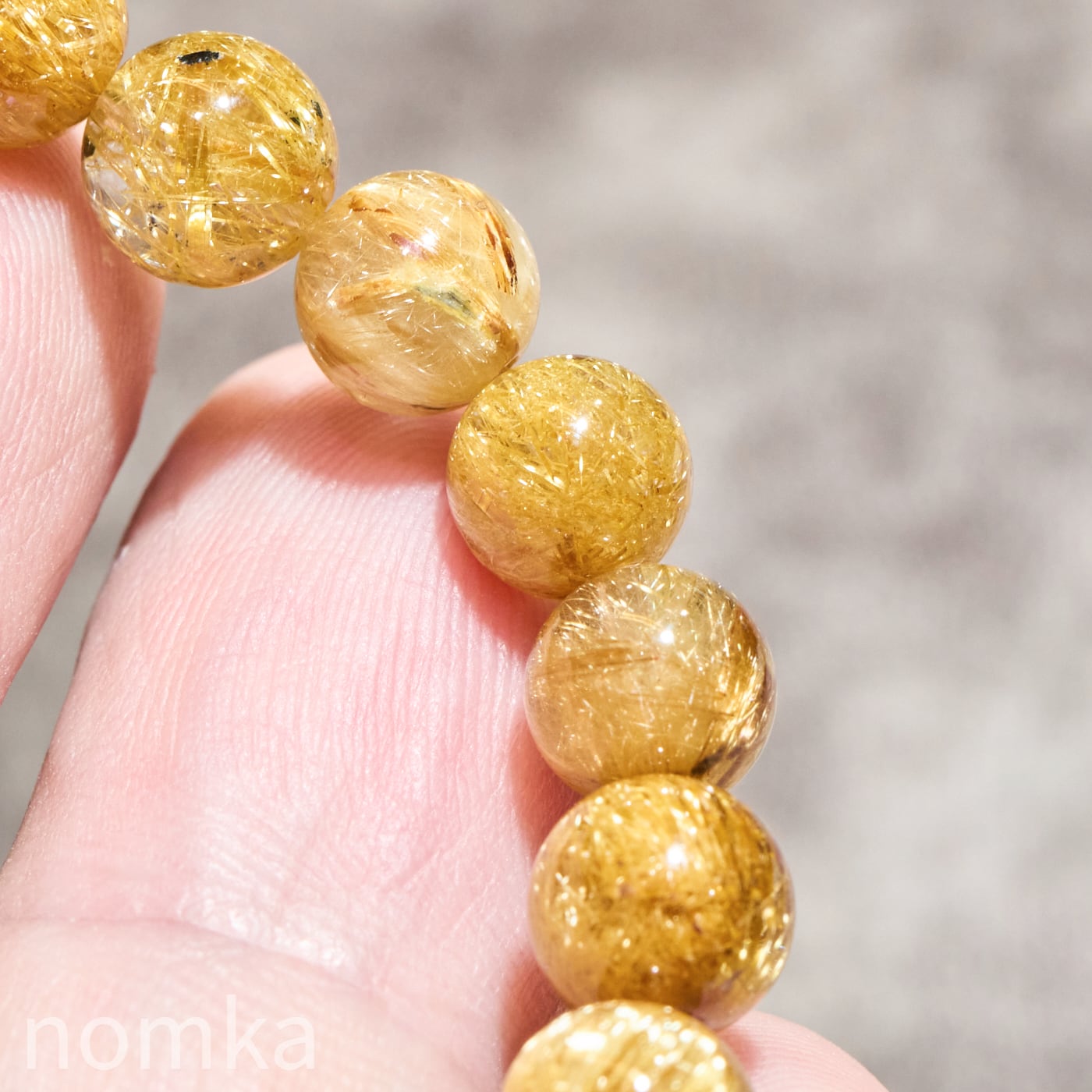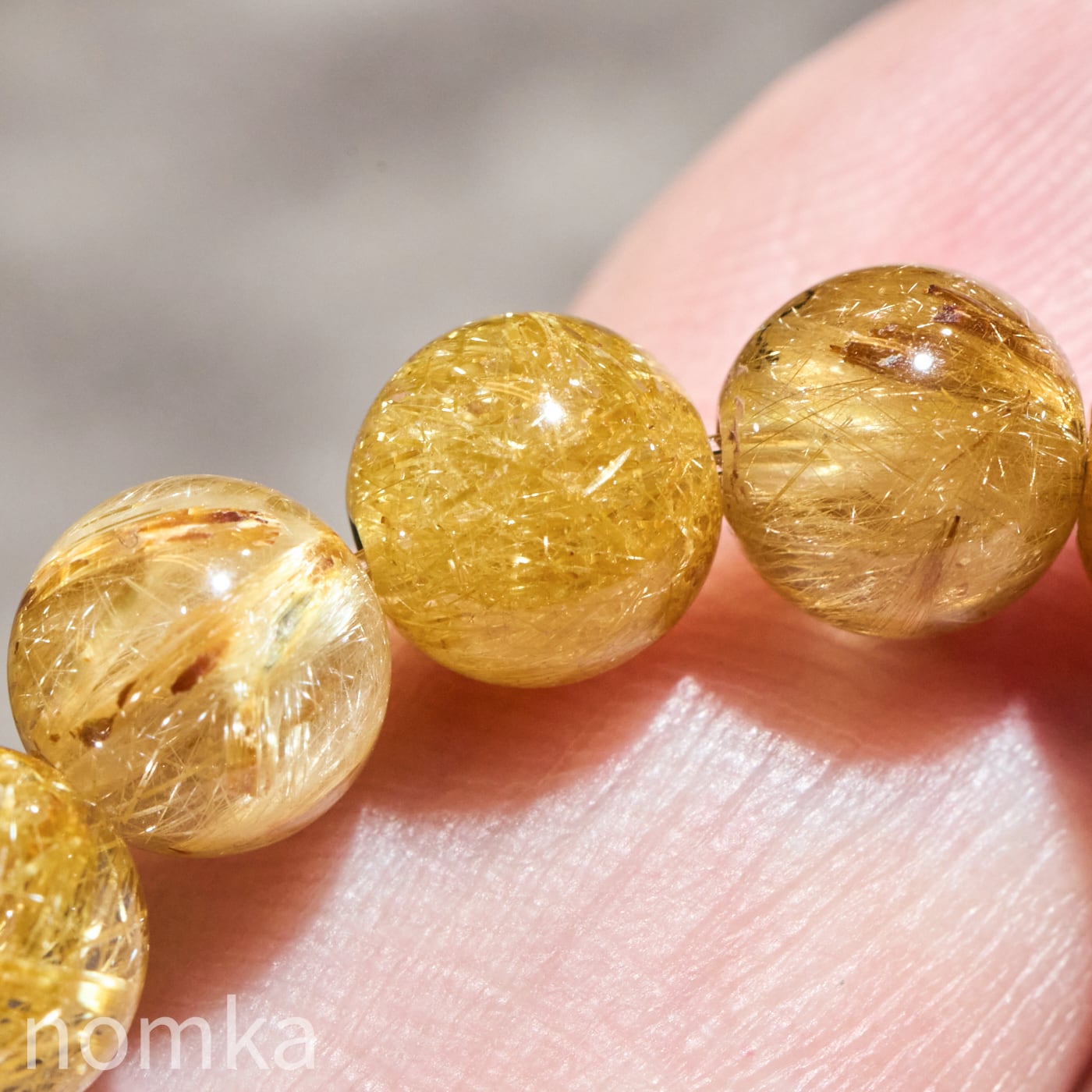 本品は7mmという扱いやすいサイズでありながら、どの角度から見ても「金色」を感じさせるほどの密度を誇ります。ただの金針水晶に留まらない、光の芸術品としてのルチルクォーツを、ぜひその腕元でお楽しみください。