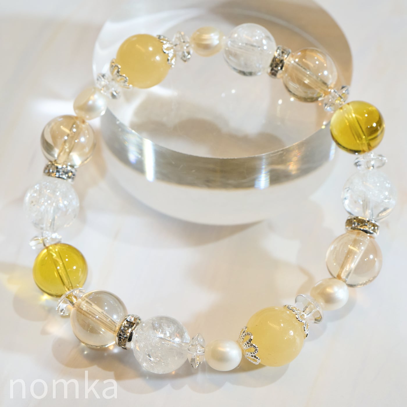 【希望と陽だまり】アラゴナイト×淡水パール デザインブレスレット nss26-0074