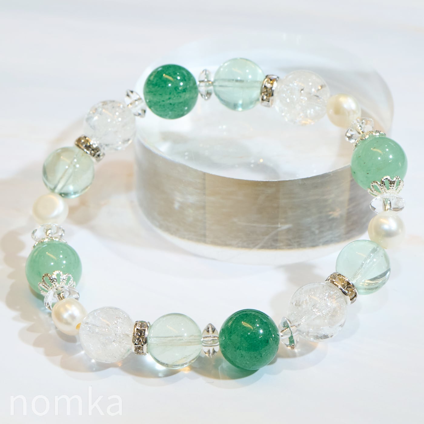 【安らぎと輝き】アベンチュリン×淡水パール デザインブレスレット nss26-0072