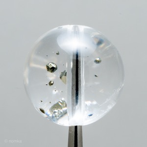 黄鉄鉱(パイライト)が水晶の中に内包された非常に珍しい天然石です。