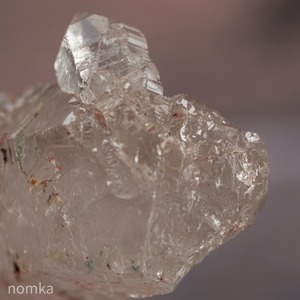 所々に赤褐色の緑泥石のようなものが内包された、独特の魅力があるアイスクリスタルです。グリーン色の内包物も見受けられますので、ガーデンクォーツの様な印象もあります。安定したポイントに小さなポイントがくっついてるのが可愛らしいです。
