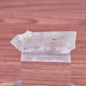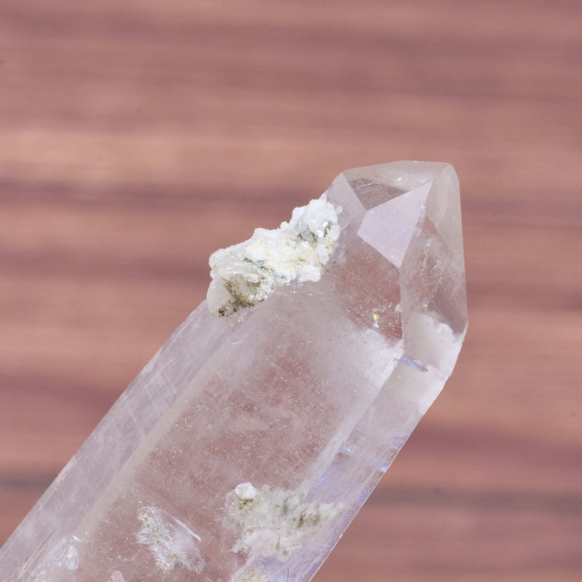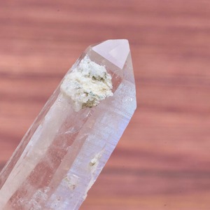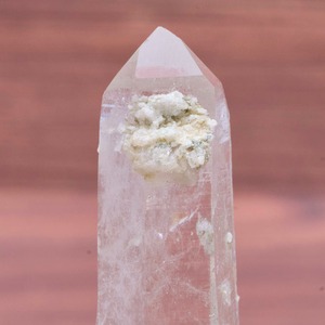 先端と中腹に白色の別の鉱物が共生しています。水晶ポイントを持ち歩きたい方にはオススメのサイズです。