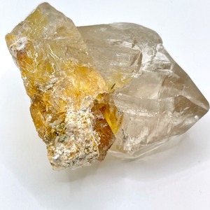 またライモナイト(鉄分が溶け水晶内に侵入して黄色くなっています)が確認できイエローとブラウンのコントラストが綺麗な水晶です。